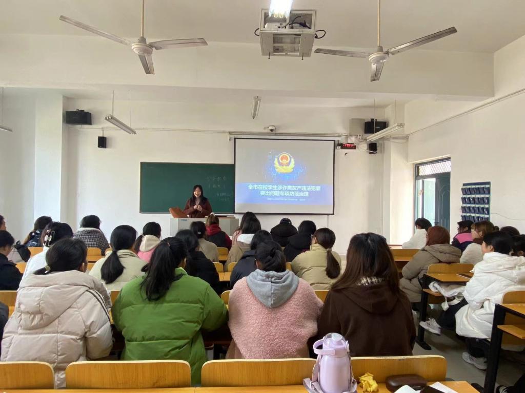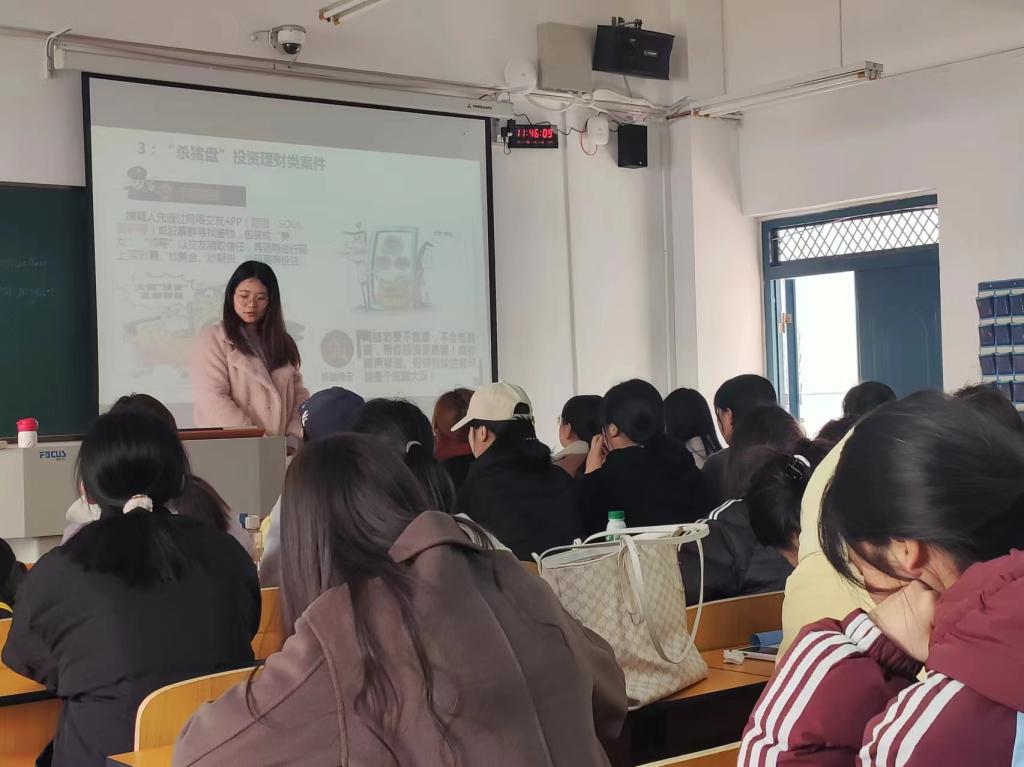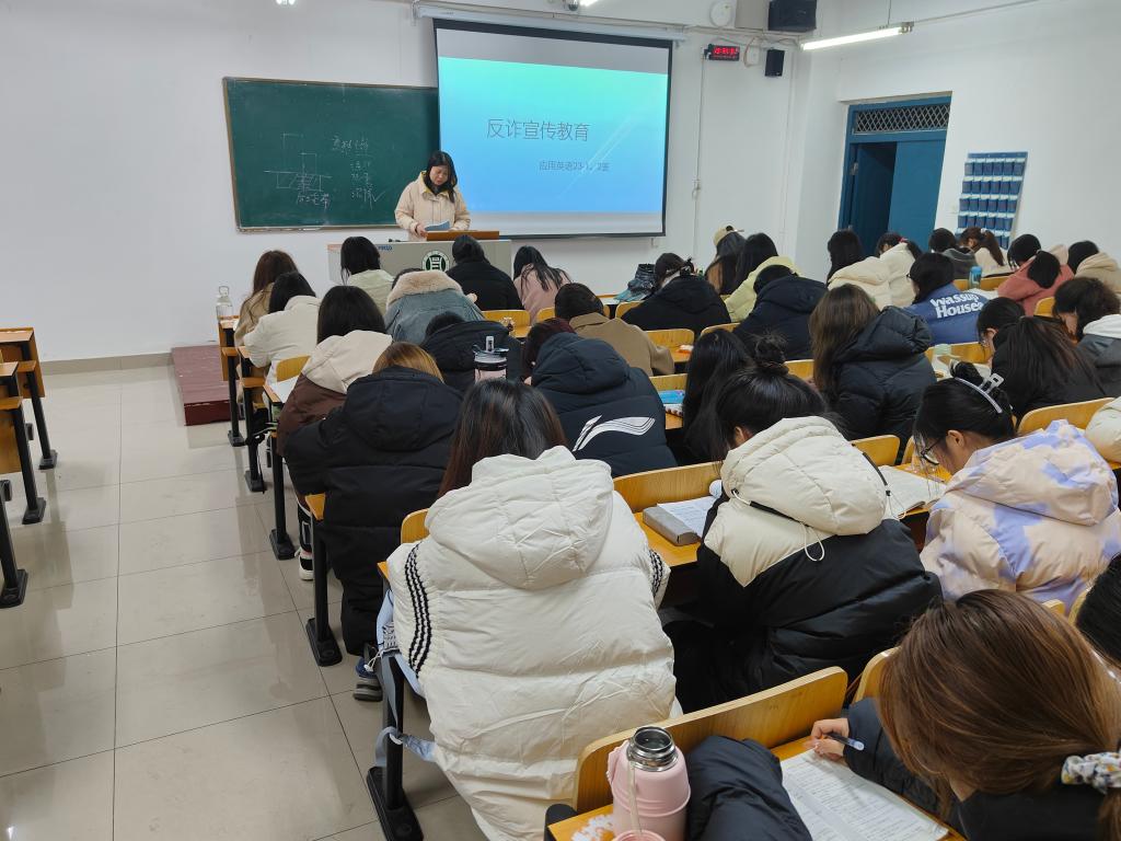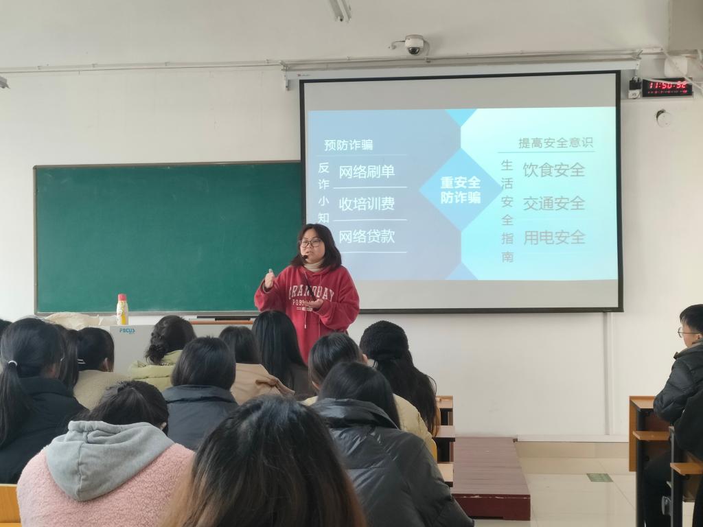 会上,辅导员老师从电信网络诈骗概念、特点与趋势、常见手段、如何加强自身管理从而警惕涉电诈犯罪等角度展开,结合具体案例宣传了防范电信诈骗犯罪的相关知识,提醒同学们无论是电话、短信、QQ、微信等方式,无论接到任何单位、个人、任何理由的转账、汇款、索要账号密码等要求,都要做到不听、不信、不转账、不汇款;要提高警惕,识别披着“网红孵化”外衣等以高薪工作为诱惑的违法犯罪行动,关注公安机关、官方媒体发布的防骗技巧,提高自身防骗意识。(撰稿/外国语学院 高宇  摄影/外国语学院 各班辅导员)