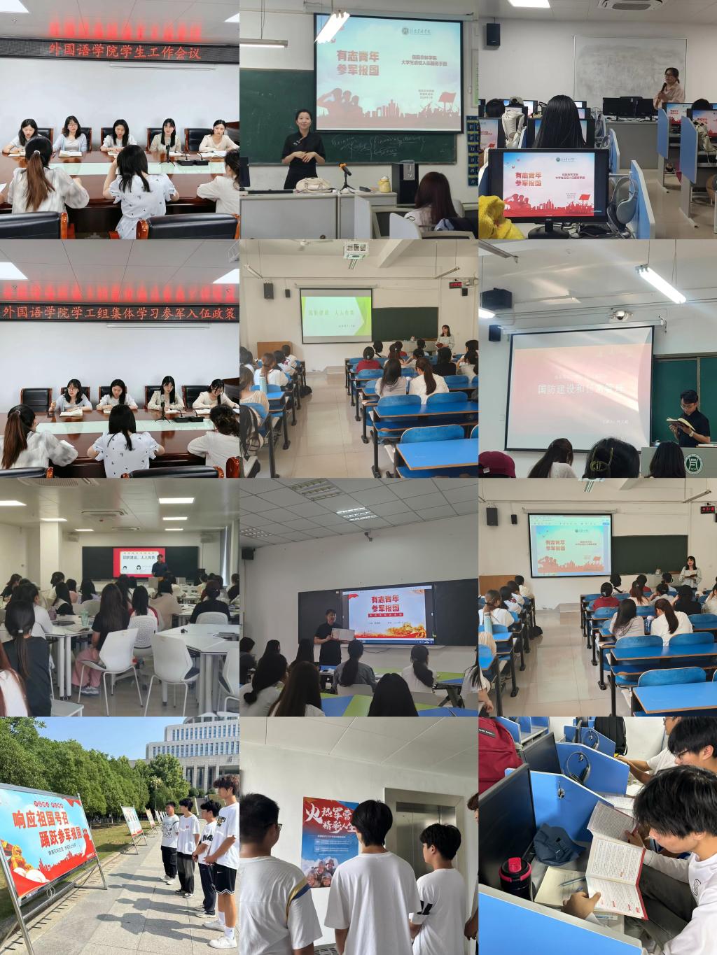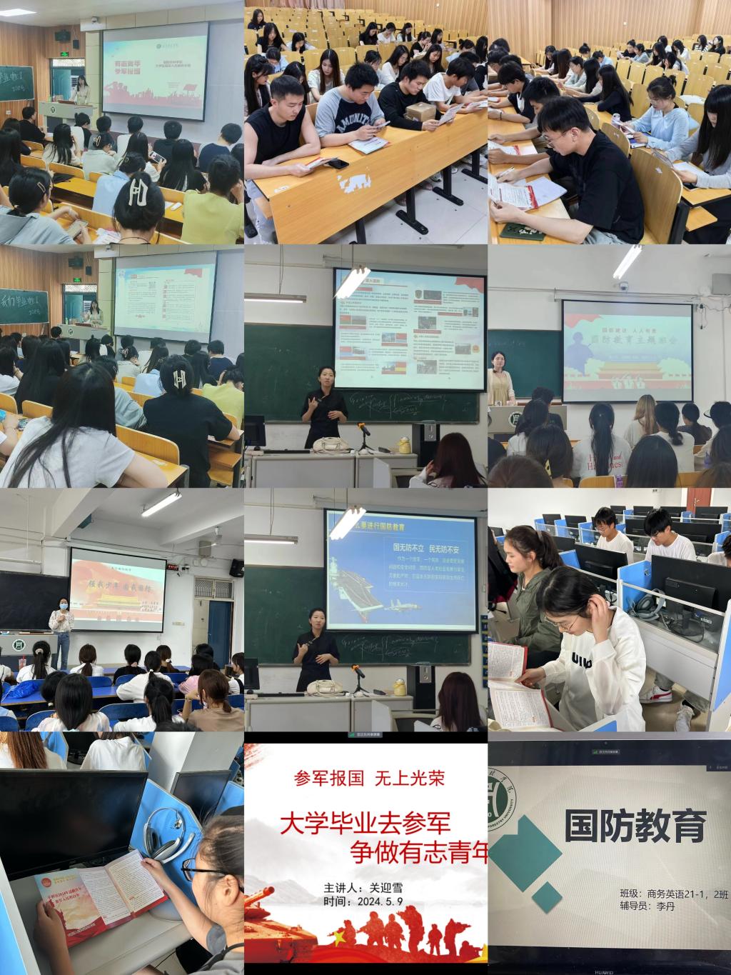 2024年5月,外国语学院在各年级陆续召开国防教育报告会暨征兵宣讲会活动。本次活动旨在提高外国语学院学生的国防意识,普及国防知识,同时宣传征兵政策,鼓励有志青年投身国防事业。