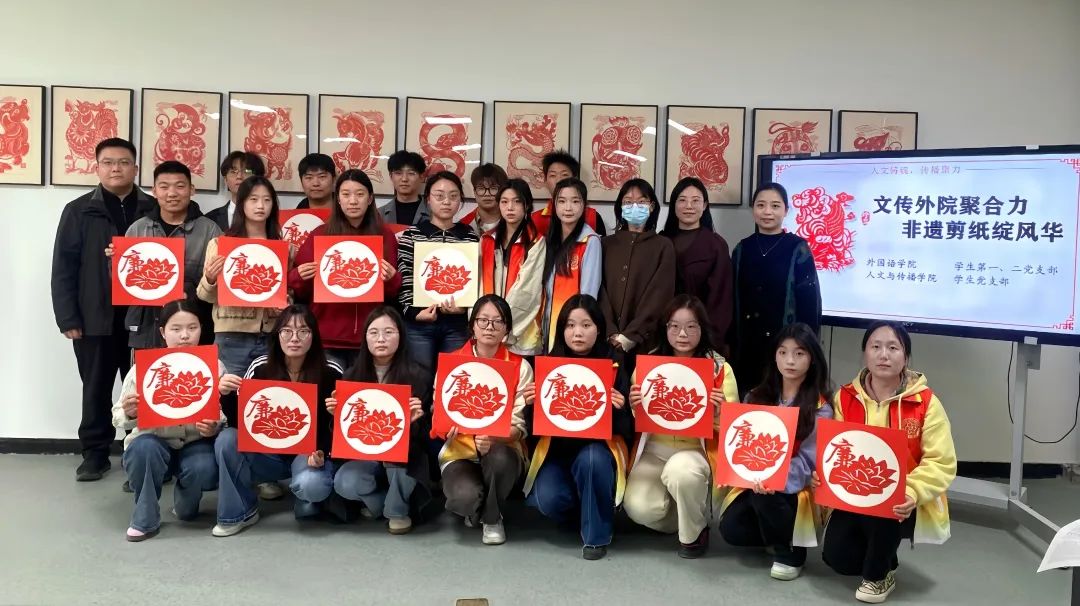 为弘扬中华优秀传统文化,推动非物质文化遗产传承,202541日,外国语学院联合人文与传播学院于艺术楼南楼309室开展了“‘新语问学讲述中国 传递文化(四)——文传外院聚合力,非遗剪纸绽风华主题实践活动。外国语学院团委书记高宇、人文与传播学院专职组织员赵展、外国语学院专职辅导员关迎雪及红语学员代表共同参与了本次活动。