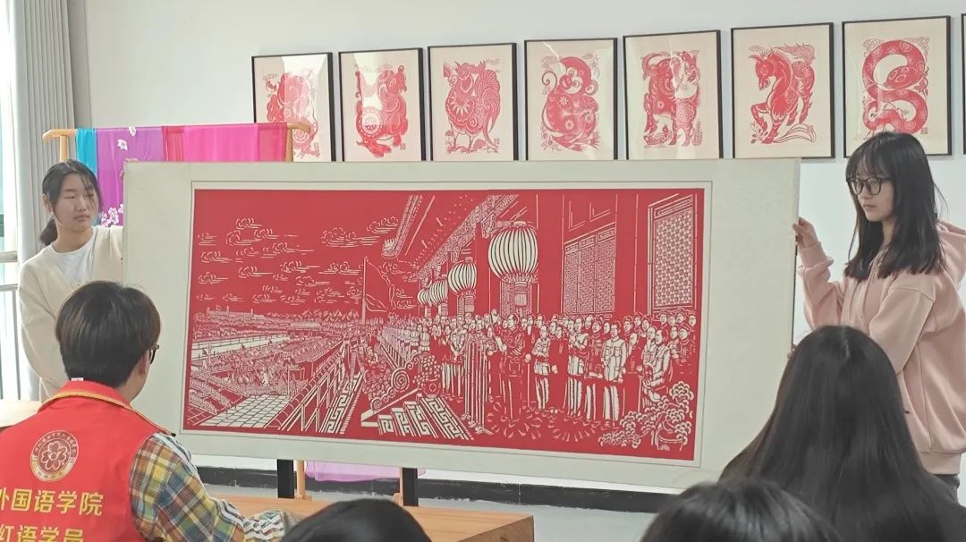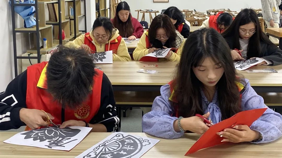 外国语学院联合人文与传播学院开展“‘新语问学’讲述中国 传递文化(四)——文传外院聚合力,非遗剪纸绽风华”主题实践活动