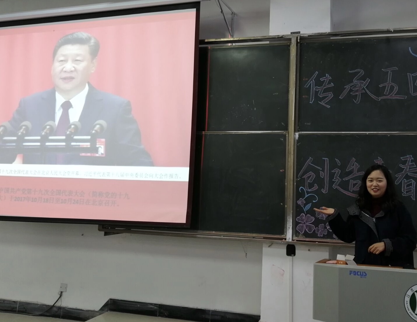 为深入学习贯彻习近平“7.2”重要讲话精神和团十八大精神, 4月25日中午12:30,外国语学院于一教E102召开了“不忘初心,牢记使命”主题宣讲会。此次宣讲会由17级辅导员朱俊梵老师主讲,我院团总支书记范琼琼老师,17、18级辅导员老师以及大一全体同学参加了本次宣讲会。