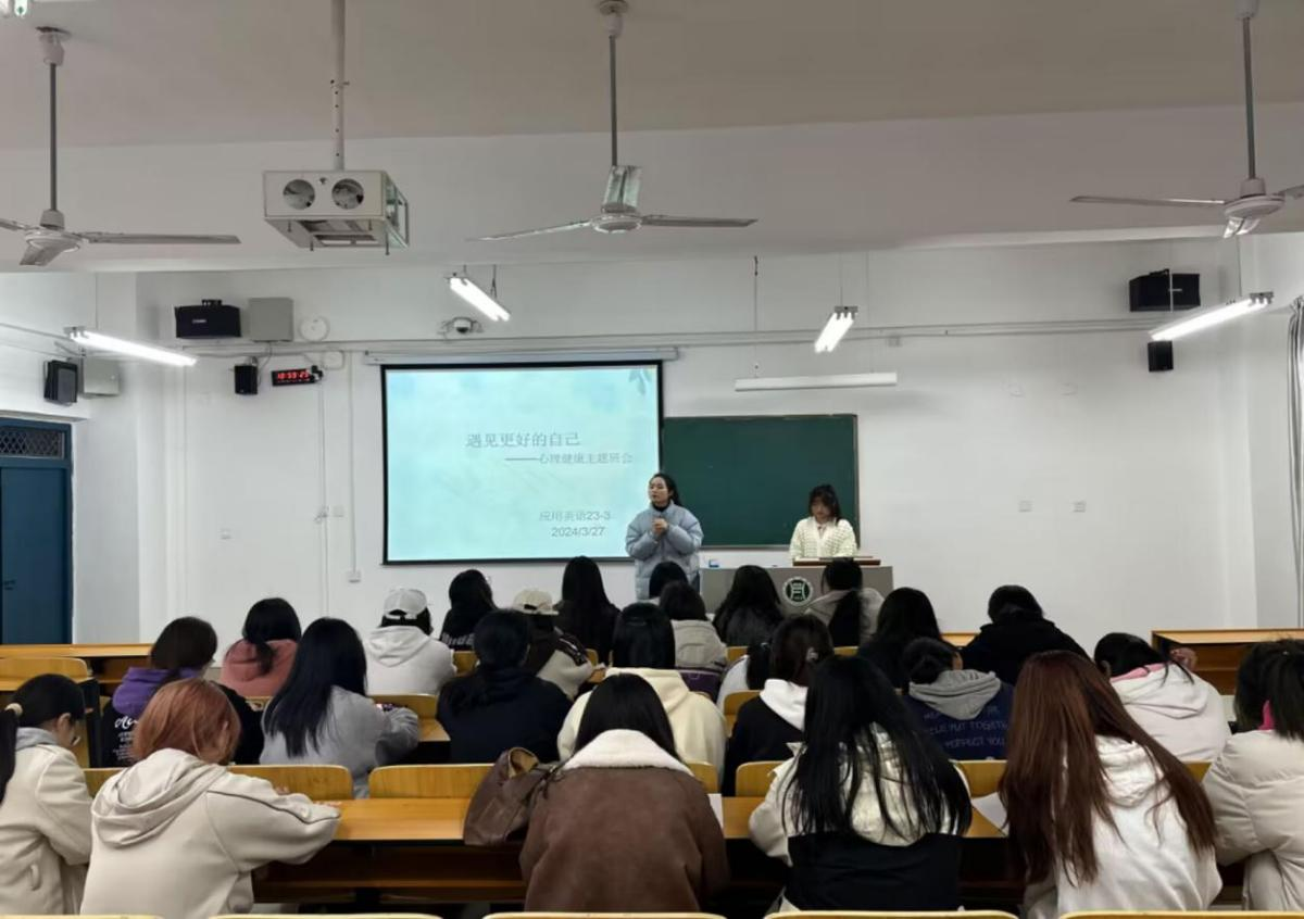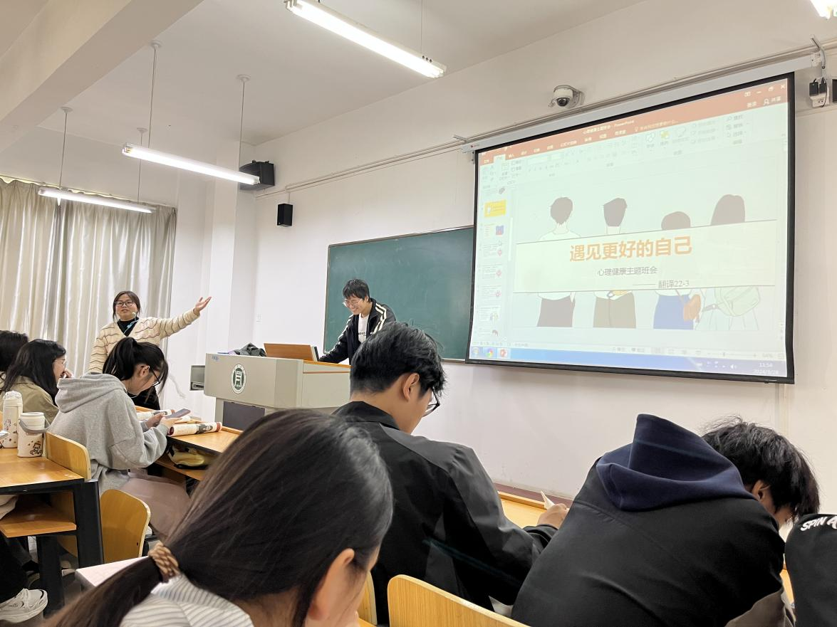 为帮助学生增强自我认知,提升心理素质,以更积极的心态面对学习和生活。3月26日至29日,外国语学院各班级陆续开展了“遇见更好的自己”心理健康主题班会。各班辅导员主讲,全体学生共同参与。