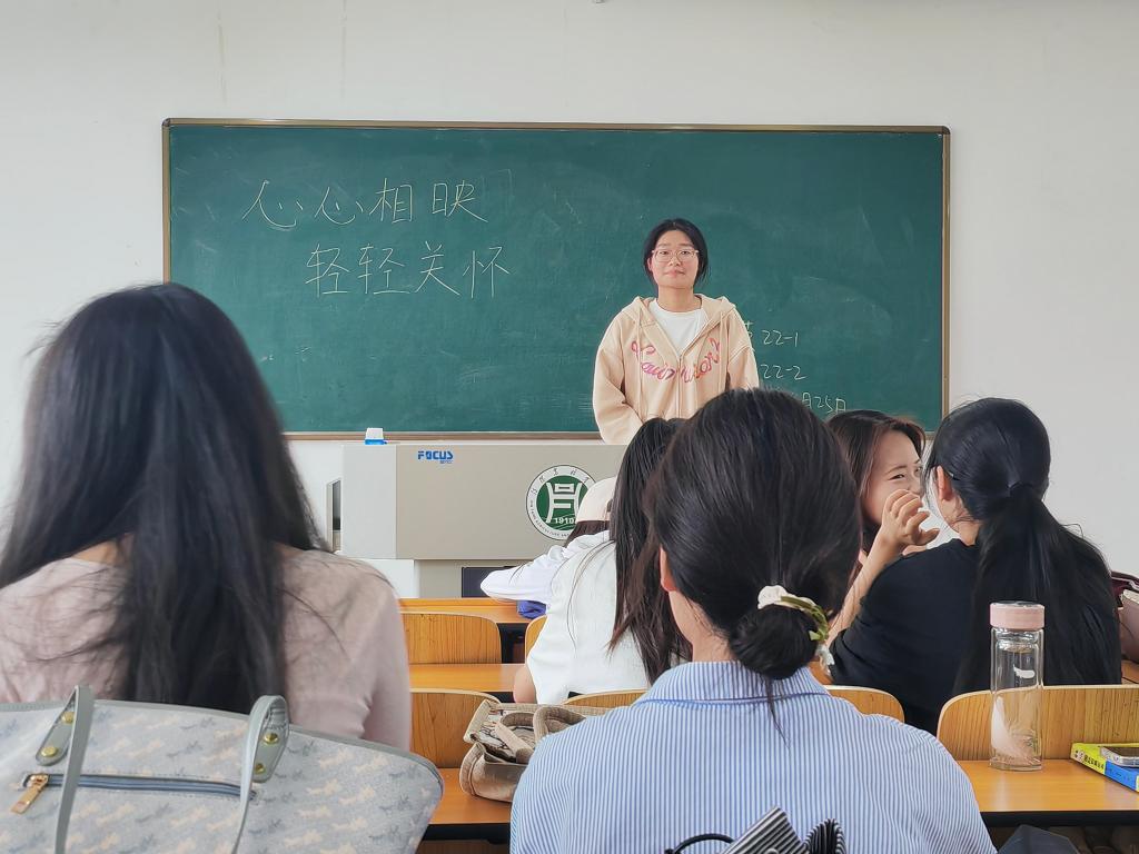 为加强学生之间的人际交往、宿舍互动,促进同学间的互相关怀和理解。4月22日-4月26日,外国语学院各班级陆续开展了“心心相映,轻轻关怀”心理健康主题班会。各班心理委员主讲,全体学生共同参与。