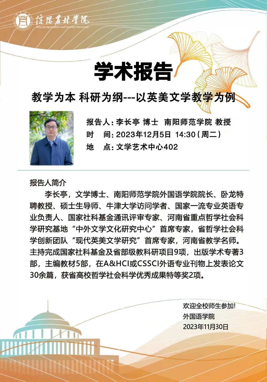 外国语学院学术报告——教学为本 科研为纲---以英美文学教学为例