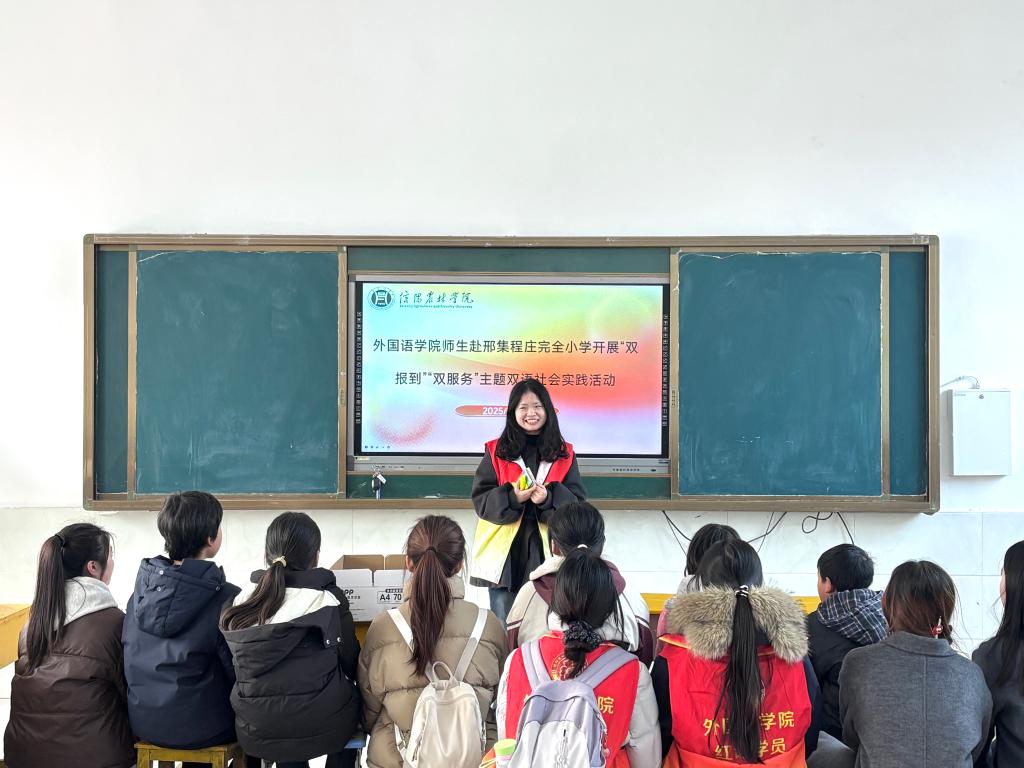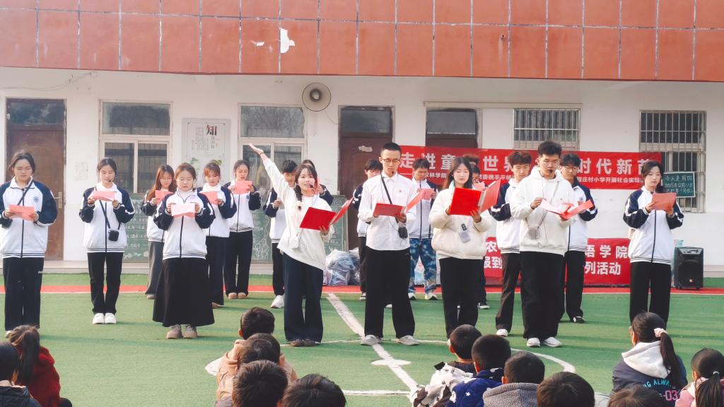 本次活动是外国语学院推动课堂知识向课外实践延伸的生动实践,也是学院服务乡村外语教育振兴的又一次有力举措。活动不仅为学院师生搭建了展示自我的平台,还为邢集镇程庄村小学的同学们送去知识与欢乐,在互动中播撒下热爱语言、追逐梦想的种子,进一步深化了学院 “以实践促学习、以交流促成长”的三全育人理念。(撰稿/外国语学院 张艺洋、车欣怡 摄影/外国语学院 赵泉舒)