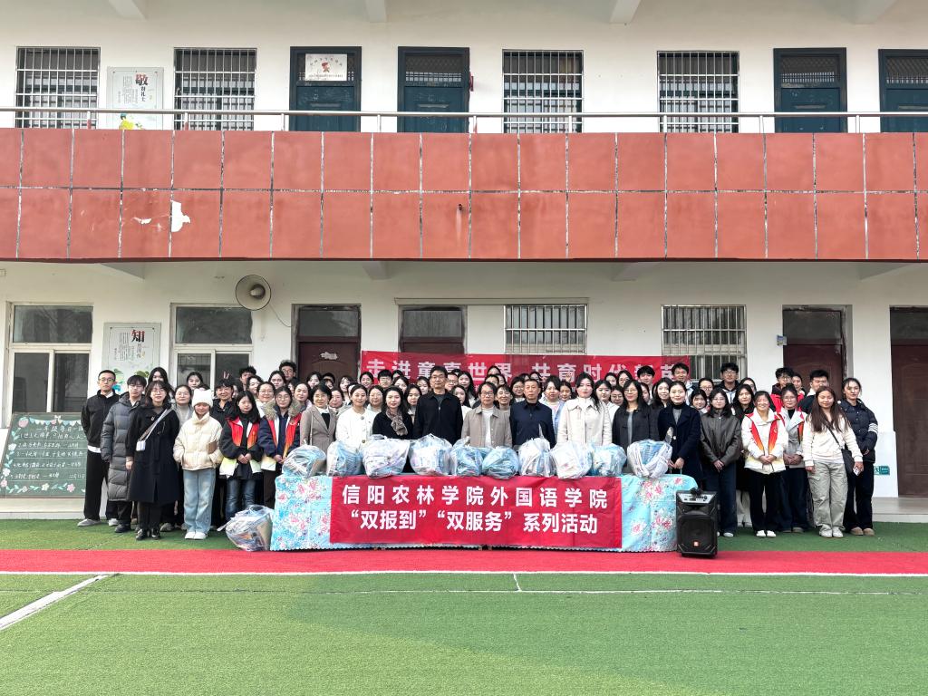 1211日下午,外国语学院师生赴平桥区邢集镇程庄村小学开展“双报到”“双服务”双语社会实践活动。学院党委书记蔡志、院长芦晓莉带队,师生代表90余人同行,邢集镇程庄村小学校长方秀威及程庄村党支部代表也共同参加了本次活动。