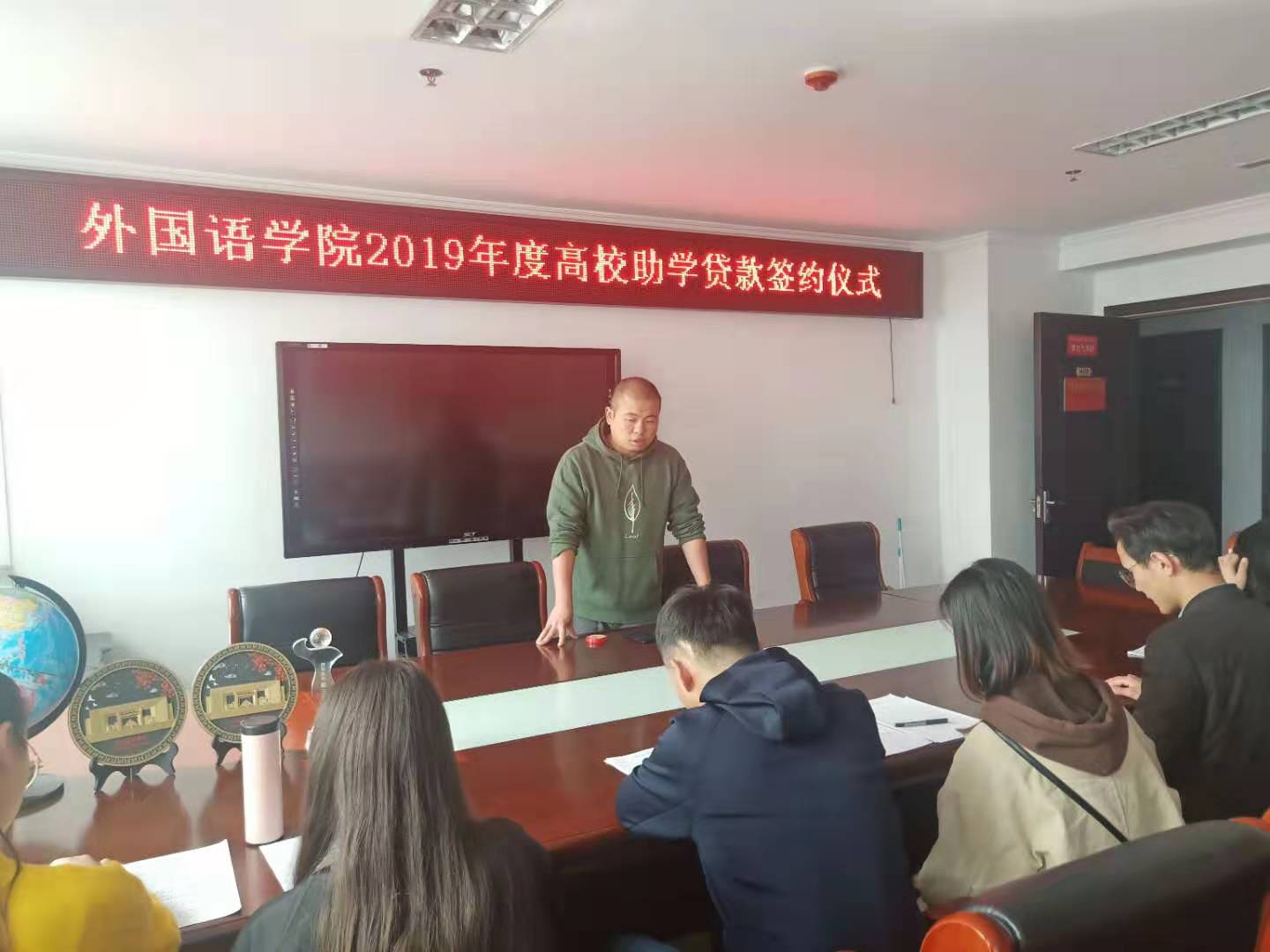 为推进2019-2020学年助学贷款工作的顺利进行,2019年11月4日中午,在行政办公楼803举行了国家助学贷款合同签约仪式暨诚信培训会,我院资助专员闫达老师和助学贷款学生参加了本次会议。