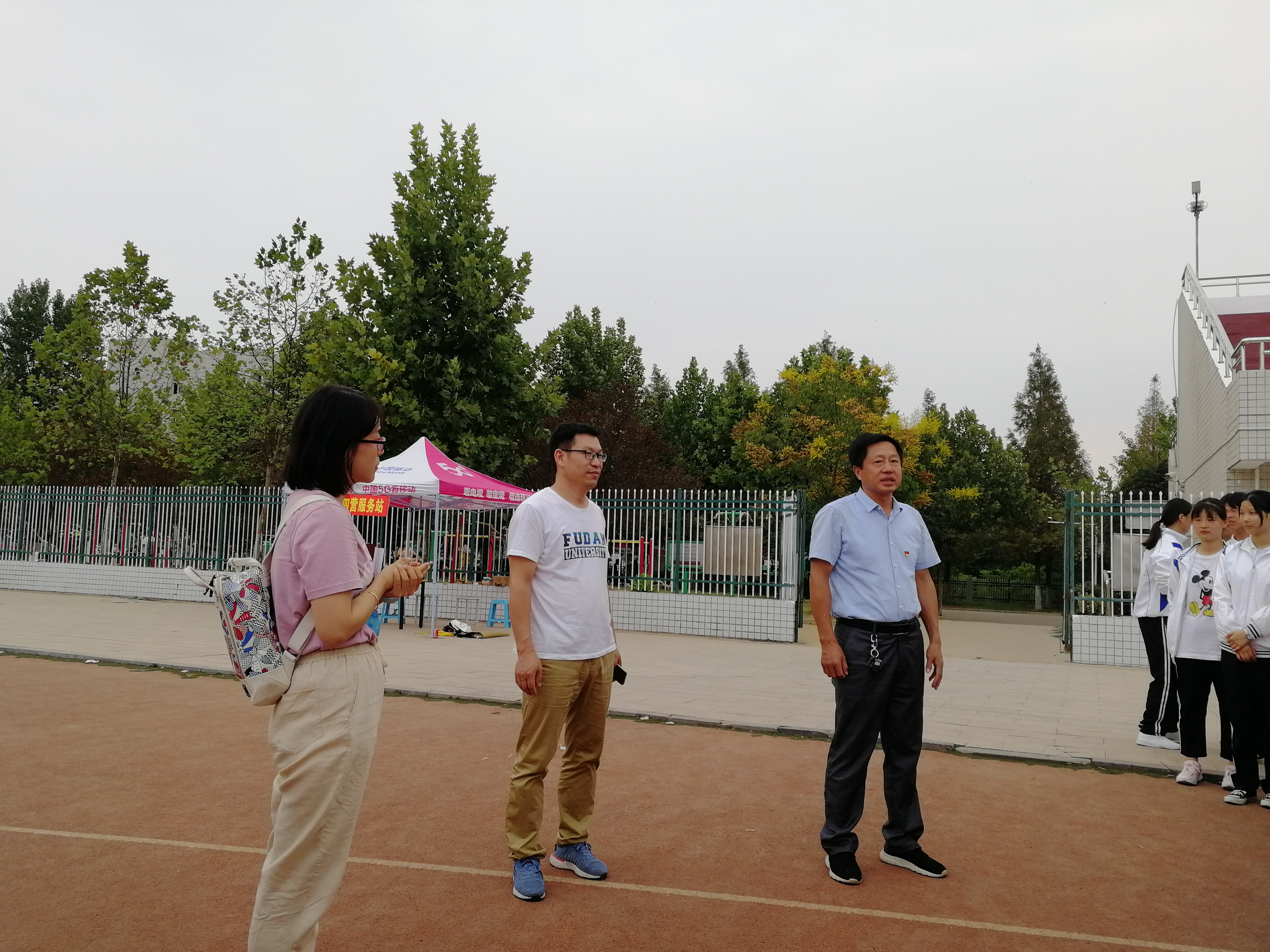9月12日下午,我院党总支书记张志强、院长滕海、组织员、学工组组长吴宏、办公室主任郗杨、团总支书记范琼琼及武装专干朱俊梵一行人赶往2019级新生训练场地,亲切看望和慰问了新生辅导员、学生干部及军训的新生们。