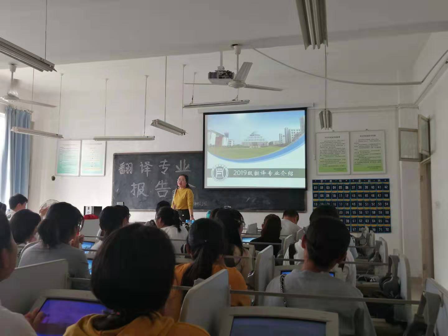 “大学之道,在明明德,在亲民,在止于至善。”入学教育是学生迈入大学的第一课,是大学生思想教育的关键部分和大学教育的关键环节。外国语学院2019级商务英语、翻译、应用英语、旅游英语专业分别于9月23日、24日在实验楼各教室召开专业介绍会。各教研室主任、青年骨干教师代表、2019级新生辅导员及全体2019级新生参会。