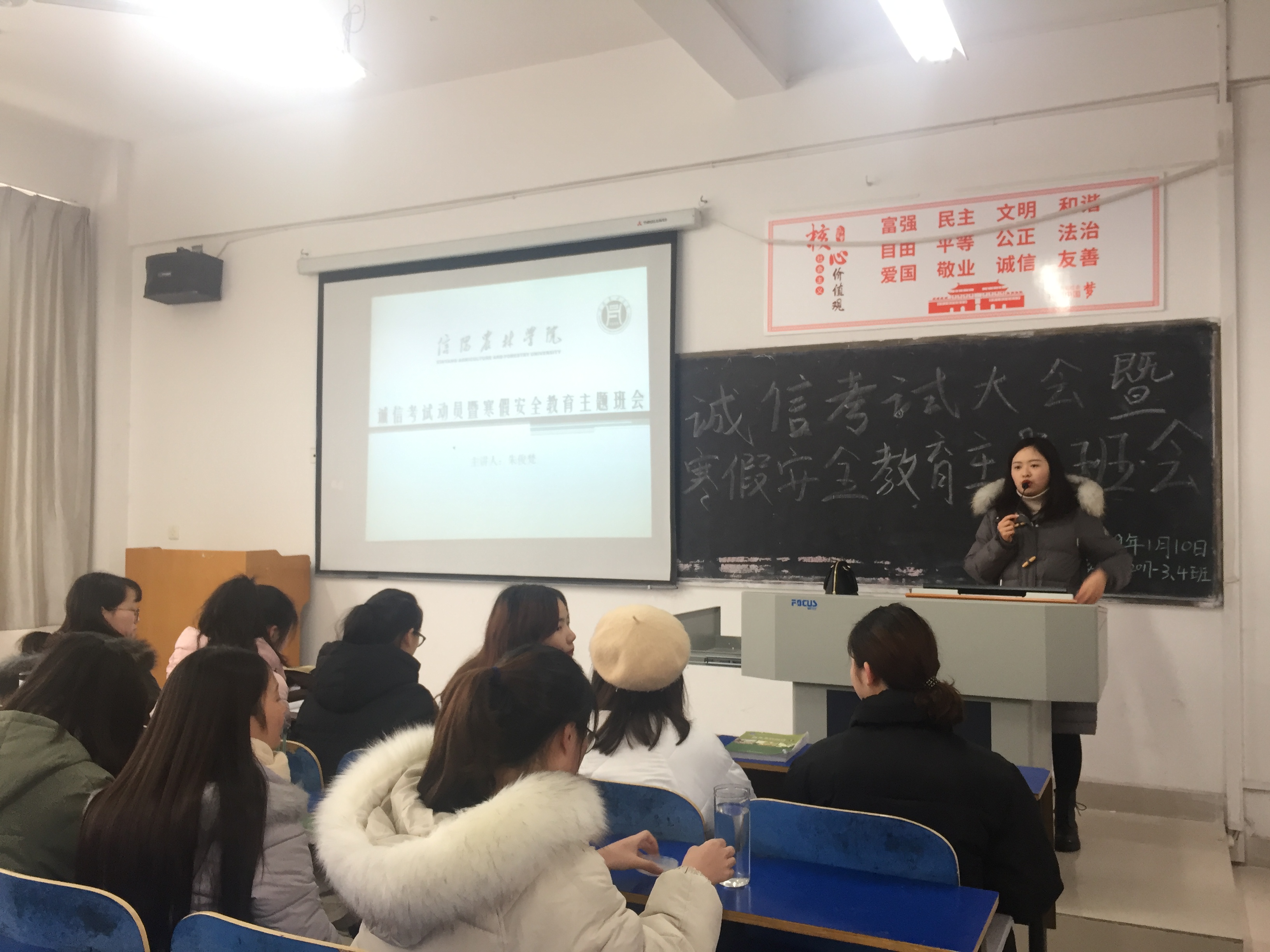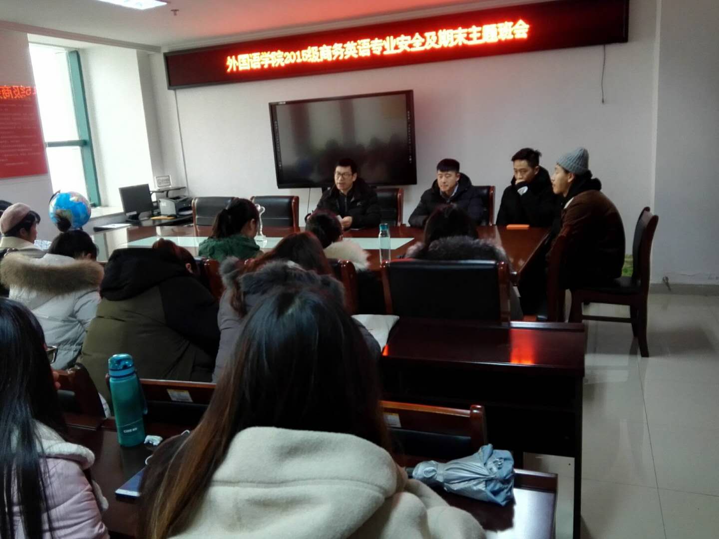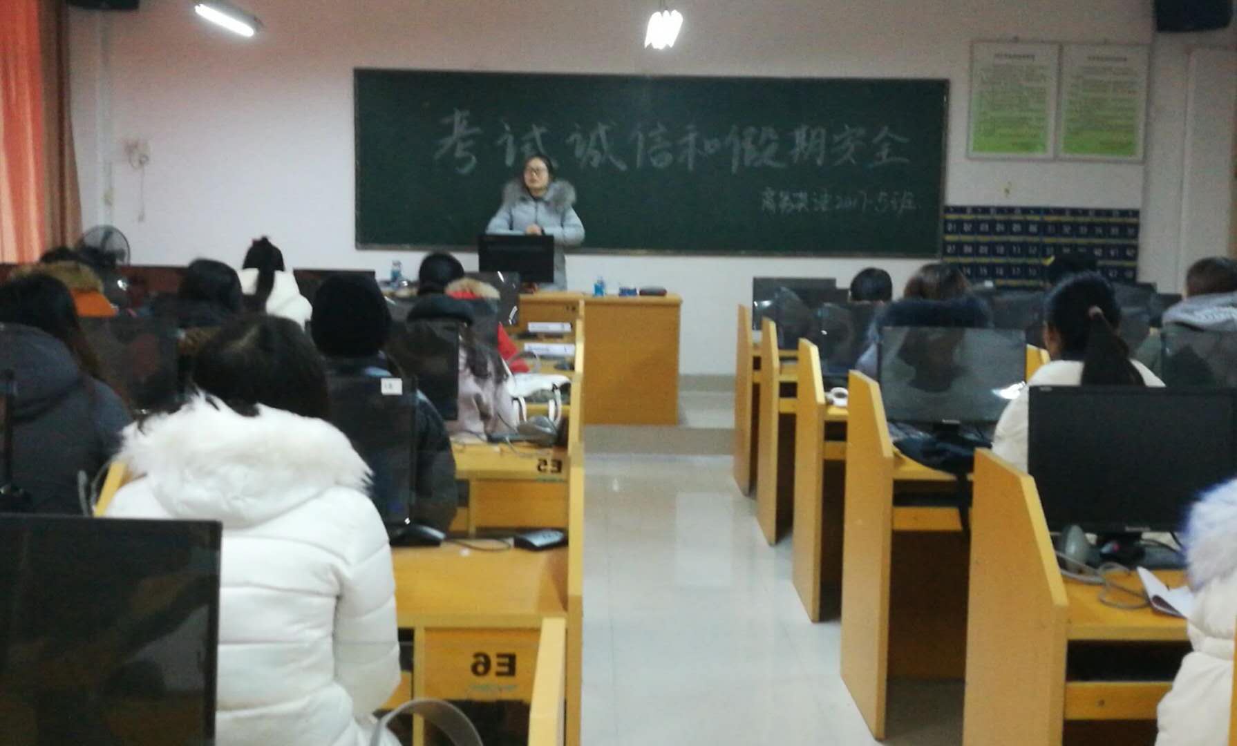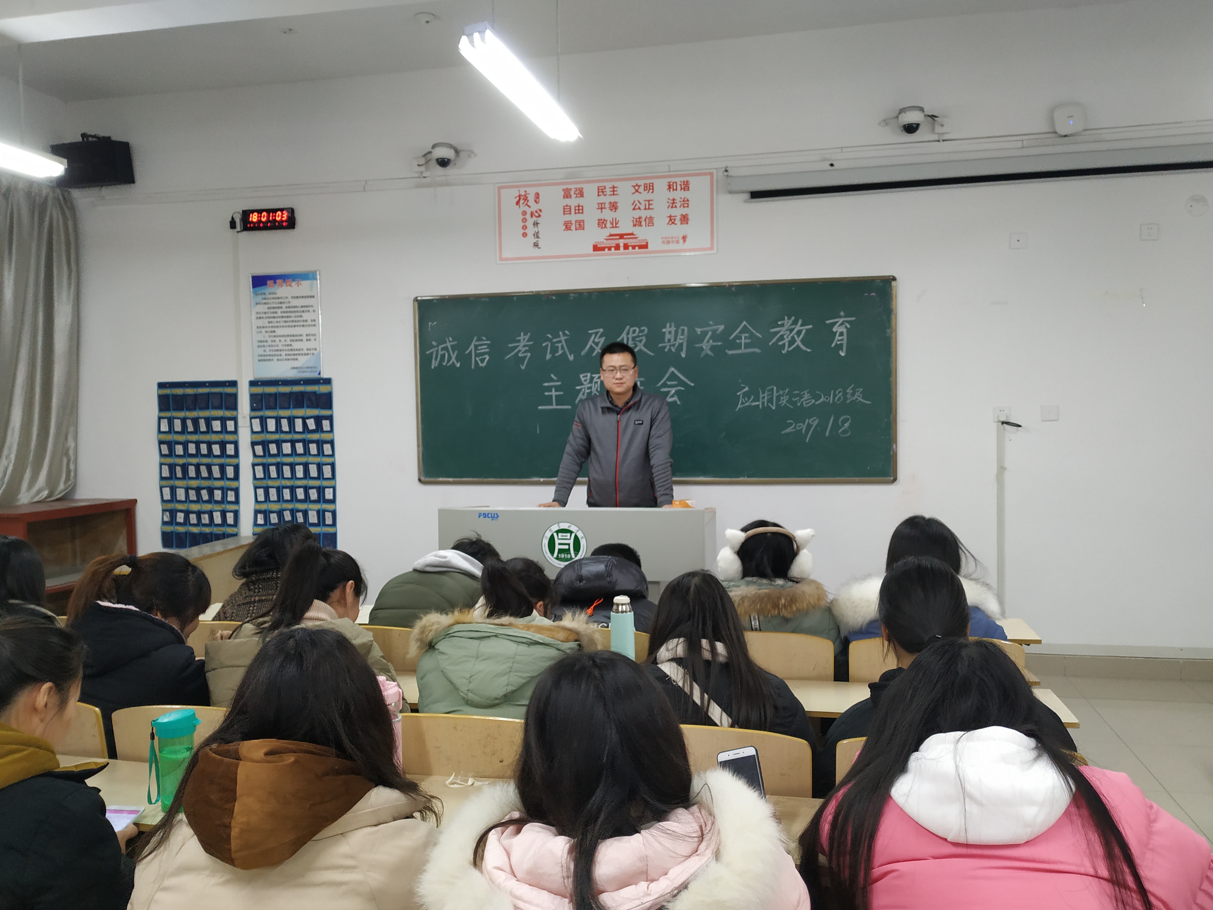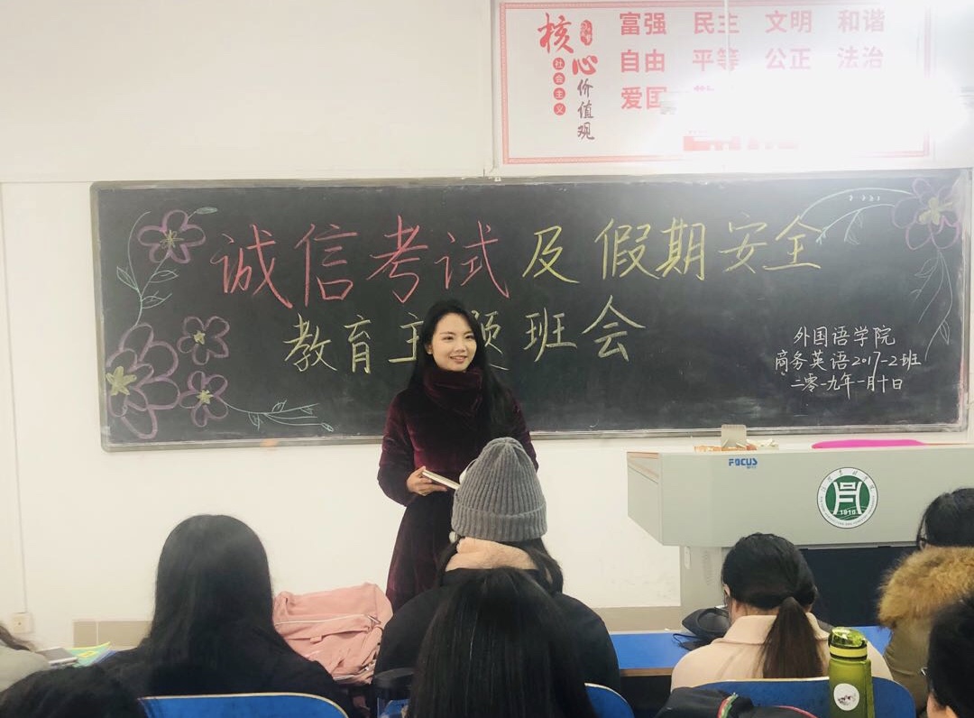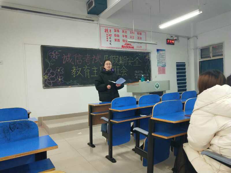 为加强校风校纪,充分发挥高校进行诚信教育的主导作用,提高同学们的诚信意识,同时做好假期离校安全工作。外国语学院各班级于1月9-10日分别开展了以“诚信考试暨寒假安全教育”为主题的班会活动。