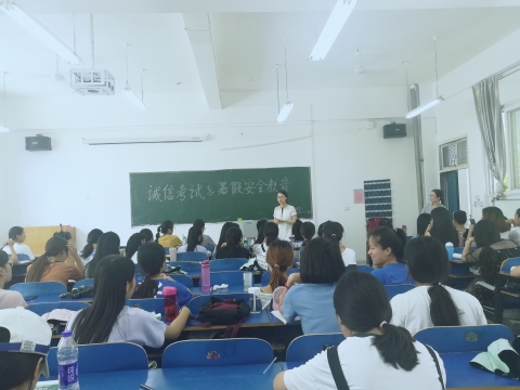 为进一步加强外国语学院学风建设,将“信、敏、廉、毅”的精神风范传播到每一位学生当中,同时,为了让同学们度过一个平安、快乐、有意义的暑假,6月21日至28日,外国语学院各班级陆续开展了诚信考试暨暑假安全主题教育班会。