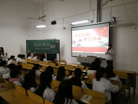 活动开始,主持人点明此次活动目的,将习近平总书记讲话精神持续引向深入,用“四进四信” 精神引领班级青年团员。随后,由各班代表发言,并由商务英语三班团支书王佳珍介绍"四进四信"一词,提问方式引发同学们思考;商务英语四班梁清同学和商务英语一班李永梅同学进行以"勿忘初心,继续前行"主题的演讲;商务英语三班员佳瑶同学带来"勿忘初心"为主题的诗歌朗诵。精彩的演讲及环节令现场活动气氛高涨。随后,朱俊梵老师向同学们讲解了四进四信的条件与意义及合格团员的标准,并对同学们送出美好祝愿。最后,主持人总结此次活动并播放相关视频,同学们对“四进四信”相关知识的理解更加深入透彻。