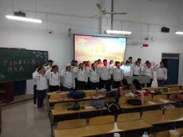 赵瑞老师带领大家学习社会主义核心价值观的主要内容,并通过讲述自身经历,所见所感,鼓励同学们将对社会主义核心价值观的认识践行到实际的生活中、学习中,提升自我。同学们经过讨论,也一致认为,应努力把握大学时光,在学习文化专业课的同时,积极参与社会实践、开展校内外志愿活动,努力充实自己,为了更优秀的自己而奋斗,不断践行社会主义核心价值观。