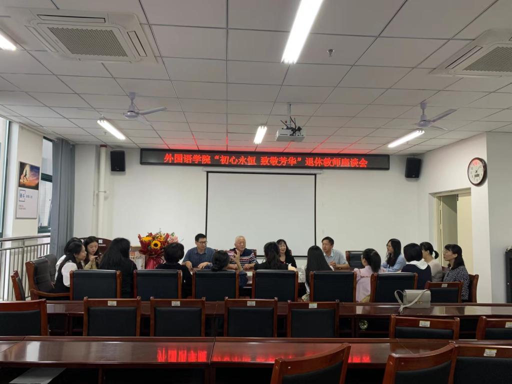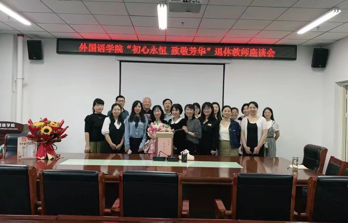 金秋之际,欢聚一堂,回忆过往,畅想未来。2022年8月30日,外国语学院在文艺楼402举办“初心永恒 致敬芳华”退休教师座谈会,荣休教师李海燕副教授应邀参加,外国语学院党总支书记张志强、院长滕海、副书记兼工会主席吴宏、副院长蔡鸣、冯昱、芦晓莉和部分在职教师代表出席。