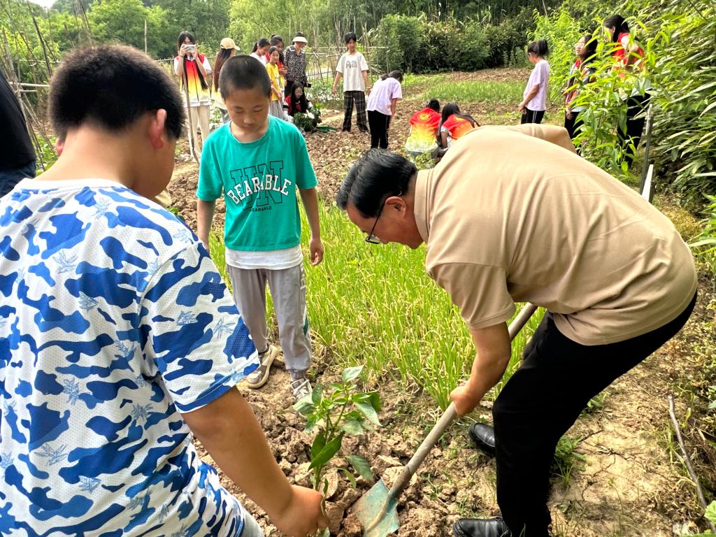 最后,学院志愿者们带领小学生们开展了丰富多彩的劳动实践活动。在农田里,同学们挥汗如雨,亲手栽种下一株株秧苗,体验了农耕的辛苦与乐趣。在栽种秧苗的过程中,他们学会了如何翻土、播种、浇水,感受到了农民伯伯们的辛勤付出。栽种结束后,同学们手拿英语单词手卡,放在了对应的秧苗旁,互相大声朗读背诵,体验了一次沉浸式的英语单词学习