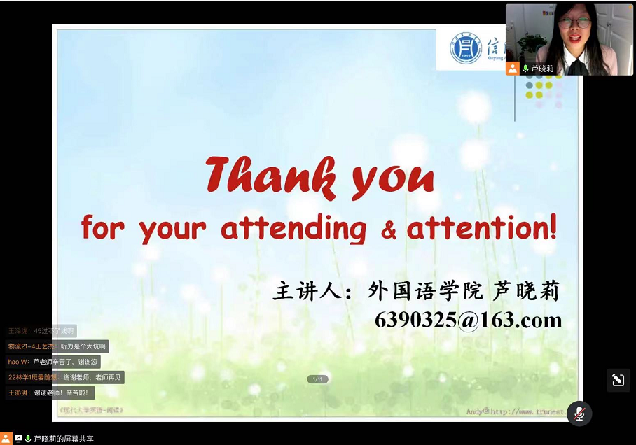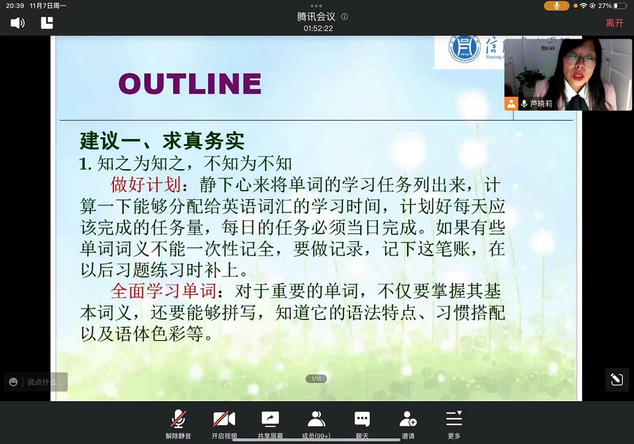 最后,芦晓莉博士还结合个人学习经历和他人成功经验,提出了几点个人建议:一、求真务实;二、有区分地复习词汇;建议三、在练习中复习和检测。