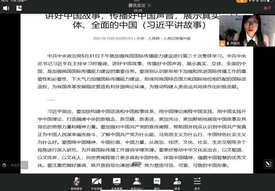 2022年11月7日19:00-21:00,考研英语服务团队于腾讯会议开启第一场题为“如何学好用好英语词汇”的专题讲座暨学院第二期博士论坛,本次讲座由外国语学院芦晓莉博士主讲,全校300余名师生参会。
