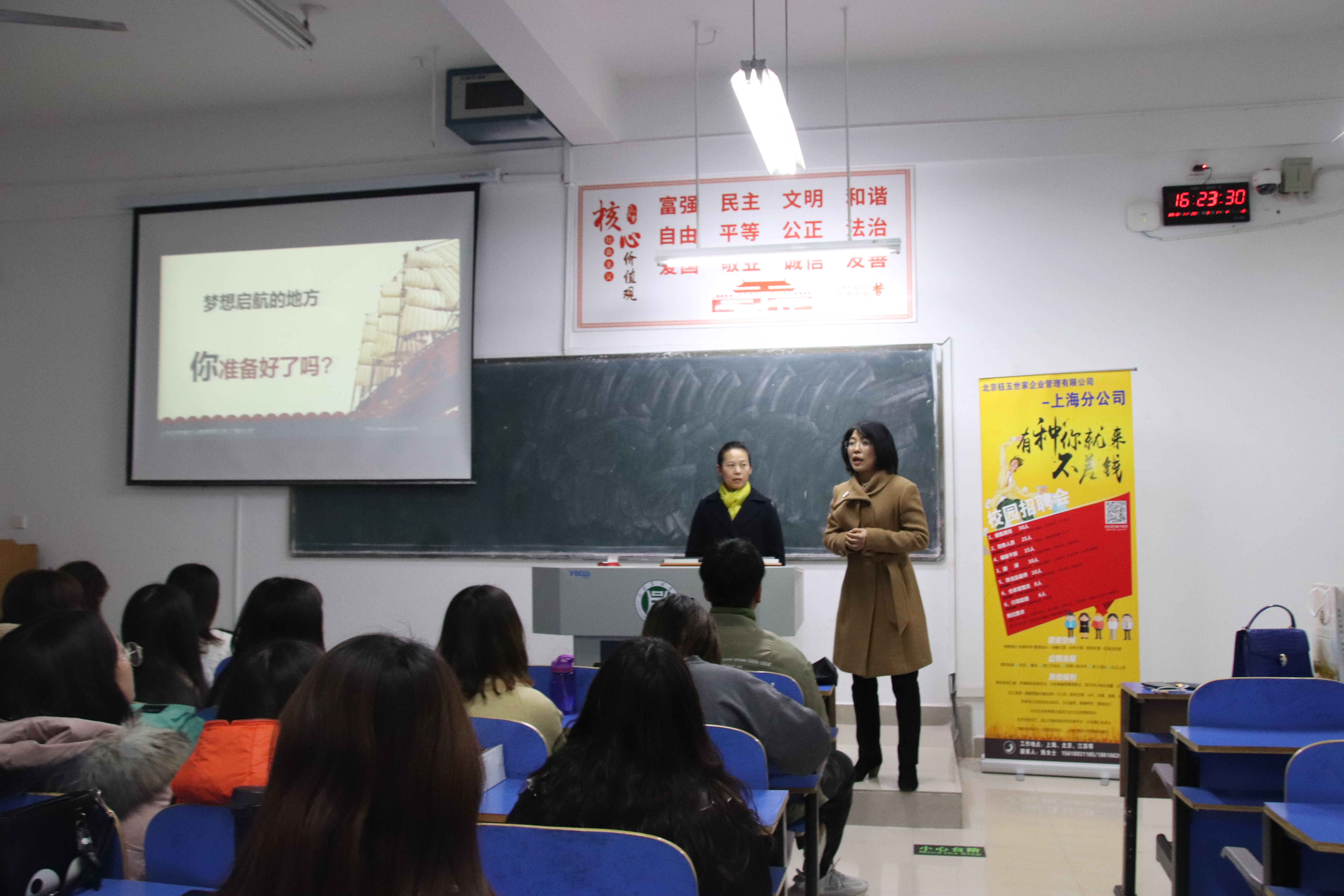 为进一步拓宽毕业生就业渠道,为企业单位输送优秀人才,加强校企间的交流与合作。外国语学院于11月29日下午在一教A101举办了北京钰玉世家企业管理有限公司(上海分公司)2020届校园招聘宣讲会,由企业负责人许老师担任主讲。我院副院长冯昱、毕业班辅导员朱俊梵以及2020届毕业生参加了本次招聘会。
