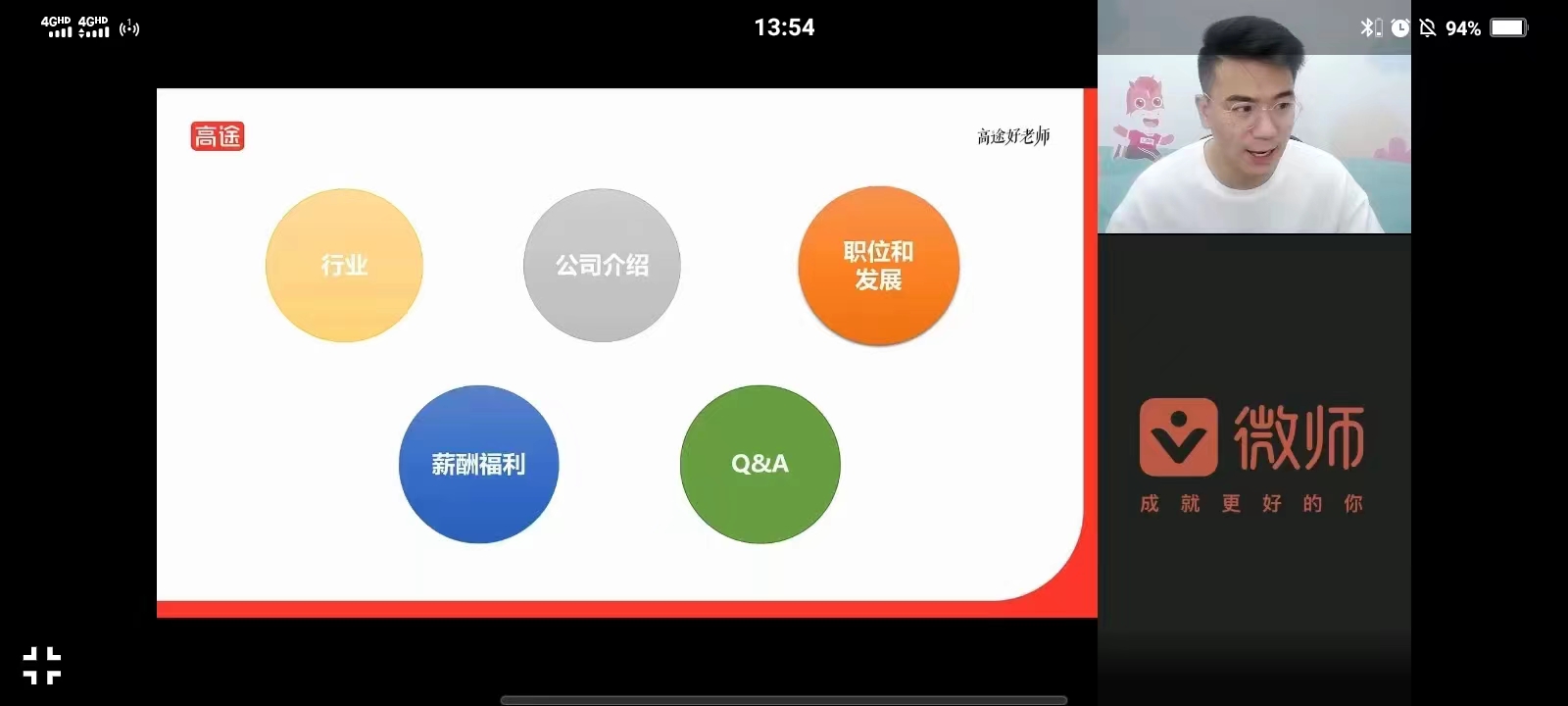会议伊始,高途招聘官张老师通过视频展示了郑州高途课堂的环境条件和内部设施。接着,又从招聘计划、岗位要求及员工待遇等方面做了具体介绍,让同学们更加充分地了解高途课堂的招聘需求,并给出了具体的招聘流程。最后,同学们积极踊跃地提出心中疑问,张老师耐心细致地给予解答,并希望同学们能尽快确定就业目标。