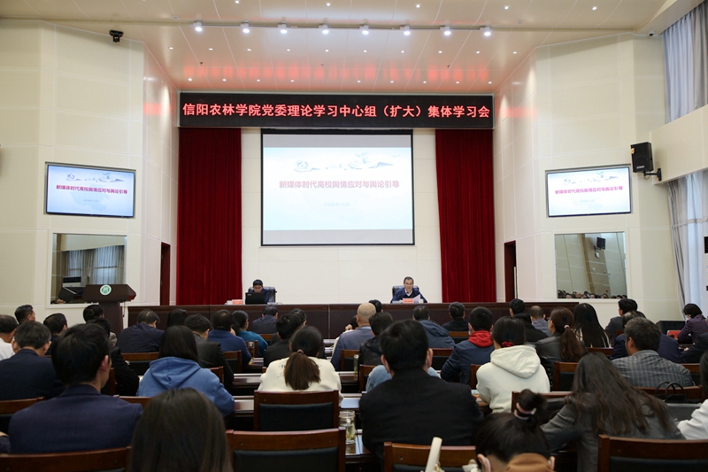 11月10日下午,beat365在线平台官网在图书馆6楼报告厅召开党委理论学习中心组(扩大)集体学习会。会议邀请河南省教育厅办公室副主任、新闻办副主任陈凯博士作专题辅导报告。在校校领导,全校中层正职干部,各党总支副书记、宣传委员,学校意识形态工作领导小组成员单位和意识形态联席会议成员单位负责同志,各学院团总支书记,辅导员代表,各单位网络评论员,各学院新媒体指导教师和学生代表参加会议。会议由党委副书记王庆兵主持。