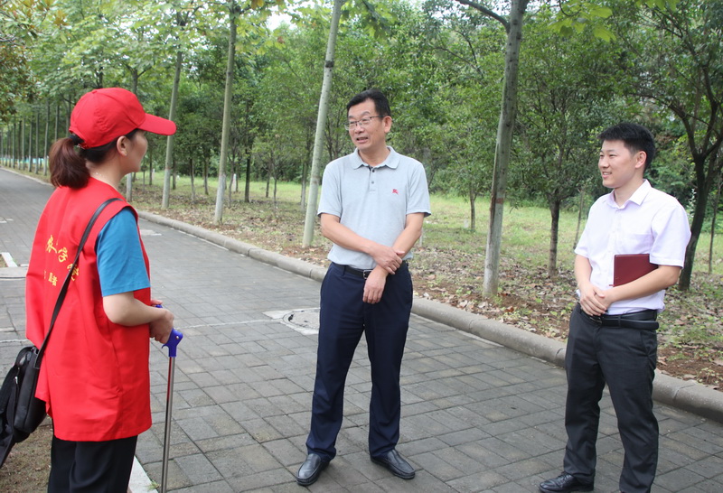 为扎实做好信阳市国家文明城市创建迎检工作,9月15日下午,党委书记余作斌带队深入校园实地对创建工作开展督查,党办、党委宣传部负责同志陪同。