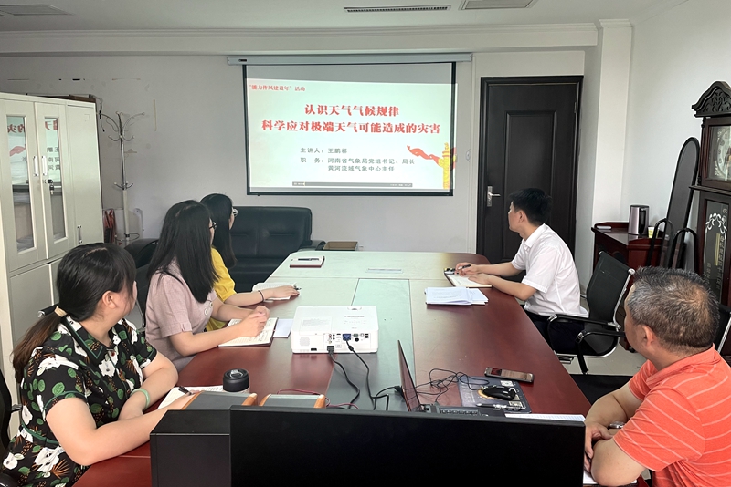 会上,全体参会人员首先收看了河南省气象局党组书记、局长、黄河流域气象中心主任王鹏祥《认识天气气候规律科学应对极端天气可能造成的灾难》的报告。