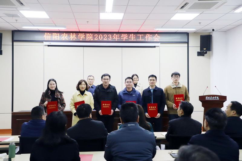 王庆兵在会上讲话。他充分肯定了2022年学校学生工作取得的成绩,对受表彰的优秀单位和个人表示祝贺,并向奋战在一线的学工同志们表示衷心感谢。他在讲话中提出五点要求:一是要坚定政治立场,把好政治方向。聚焦党的二十大精神和“立德树人”根本任务,深化“三全育人”综合改革,发挥“十大育人”体系见成效。围绕“时代新人铸魂工程”,着力构建思政育人新格局。二是要做好“以文化人”工作,强化校园文化育人功能。坚持理想信念教育常态化,坚持用红色精神铸魂育人,打造信农特色的校园文化建设优秀品牌和成果;加强学生社团品牌建设,善用社会大课堂开展教育实践活动,提升实践育人的成效。三是要发挥好协同育人作用,强化校内、家校、社会大协同形成育人合力。探索“一站式”学生社区综合管理模式,着力构建齐心协力、齐抓共管、高效服务的体系结构,争创学生工作优秀品牌,提高育人服务管理水平,高质量服务学生成长成才。四是要加强队伍建设。着力开展专兼职辅导员队伍、心理健康教育教师队伍、思政队伍、就业创业队伍的建设和培养,搭建成长平台,完善激励机制。五是强化底线思维。加强意识形态阵地管理、国家安全教育、抵御宗教邪教渗透,切实扛起维护政治安全责任。同时,加强学生心理健康教育、心理危机干预,加强防范化解重大突发风险、网络安全、校园“乙类乙管”的疫情防控工作等,牢牢守住校园安全稳定底线,促进学生全面健康成长成才。