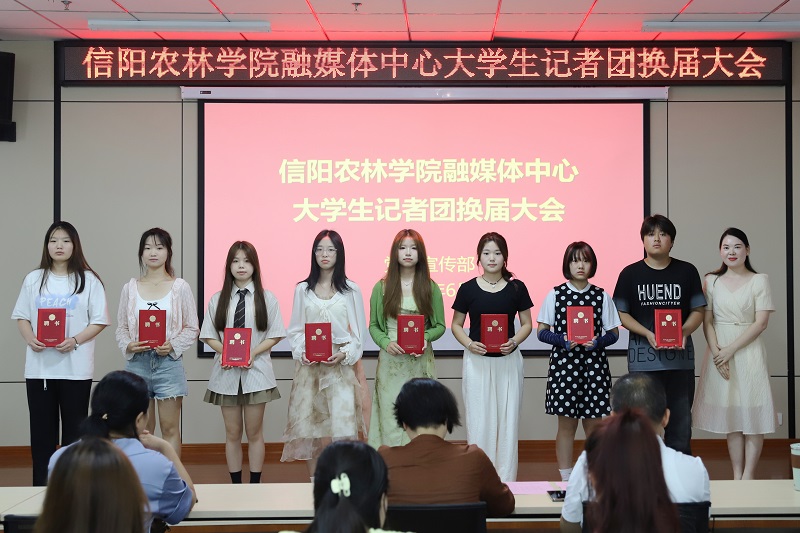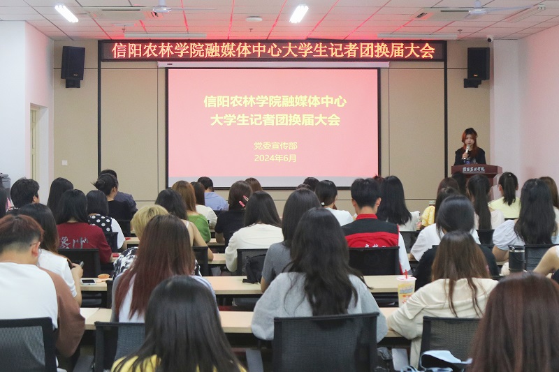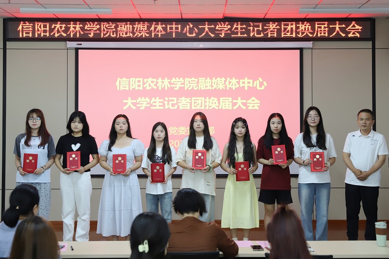 6月18日下午,beat365在线平台官网融媒体中心大学生记者团第二届换届大会在艺术楼202会议室举行。校党委委员、党委宣传部部长简频捷,党委宣传部副部长徐大伟、陈丽文,融媒体中心指导老师及全体大学生记者团成员参加换届大会。会议由党委宣传部新媒体科科长郑淇元主持。