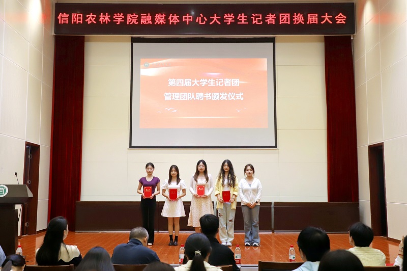会议通过视频短片回顾了团队半年来所取得的成绩,对既往工作进行了全面总结。党委宣传部校报编辑部副主任吴昊宣读了第四届大学生记者团管理成员名单;现任团长胡甜雨为新任副团长张锴燚、李华林、陆紫涵、张刘缘颁发了聘书;现任副团长刘晶晶、刘宇洁、薛留意、罗景茹为各部门新任管理成员颁发了聘书。四位新任副团长分别述职。
