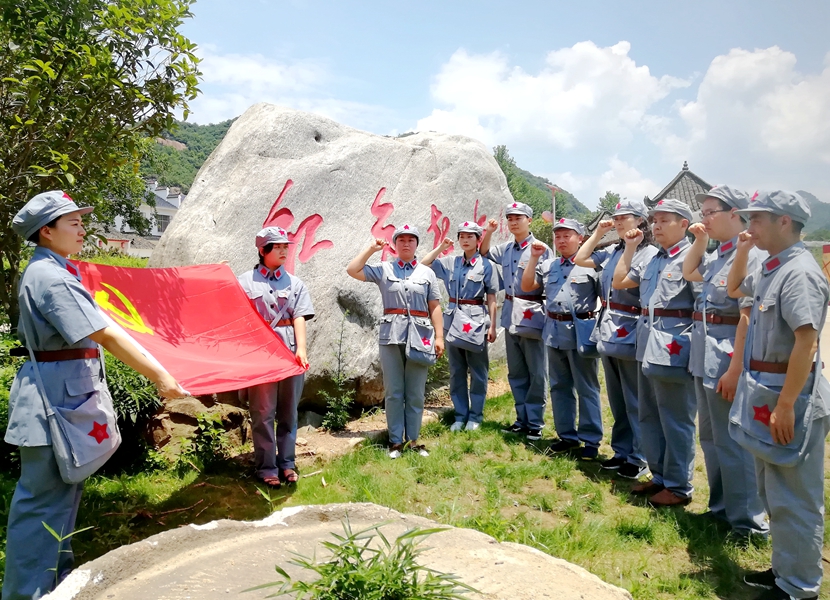 6月30日,文学艺术学院教工党支部组织党员及教职工10余人前往罗山县何家冲红二十五军长征出发地开展主题党日活动。
