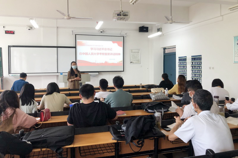 4月26日下午,马克思主义学院党总支先后召开理论学习中心组(扩大)集体学习会和全体党员大会,集中学习习近平总书记在中国人民大学考察时的重要讲话精神,并就进一步做好思想政治理论课教学工作展开研讨。大家表示,作为新时代高校思政课教师,处于教书育人的第一线,肩负着立德树人的重要使命。要胸怀“国之大者”,创新教学方式方法,把对祖国血浓于水、与人民同呼吸共命运的情感贯穿于教学全过程,引导青年学生牢记教诲,不忘爱党、爱国、爱人民的赤诚追求,坚守听党话、跟党走的忠贞初心,努力成为堪当民族复兴重任的时代新人。要和青年学子一起用心感悟思想伟力,坚定理想信念,增强身心素质,提升知识素养,积极主动参与社会实践,在实现中华民族伟大复兴的时代洪流中踔厉奋发、勇毅前进。