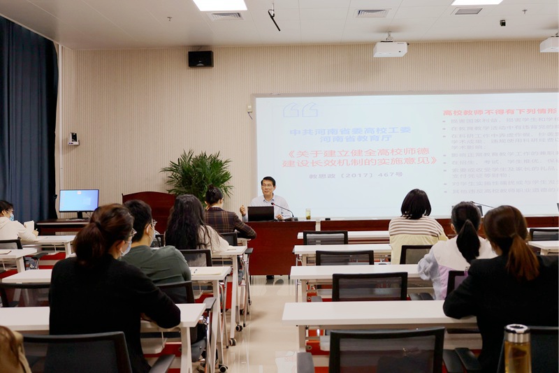 赵聘教授围绕师德建设在师资队伍建设中的重要性,以典型案例为反面教材,详实地解读了《新时代高校教师职业行为十项准则》,强调了教师必须“学为人师,行为世范”,始终将师德修养作为教师一生的“必修课”来学习,将崇德尚教贯穿于自身的工作中。
