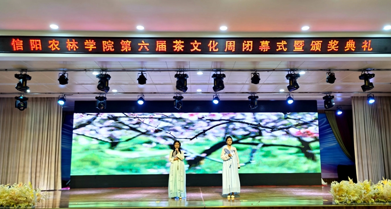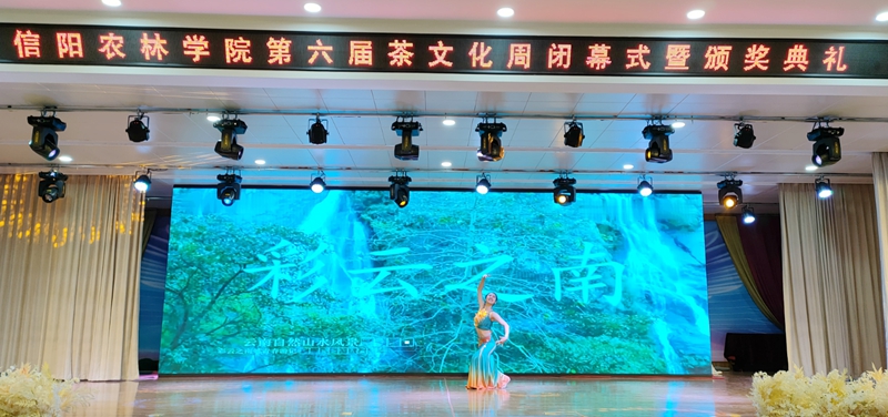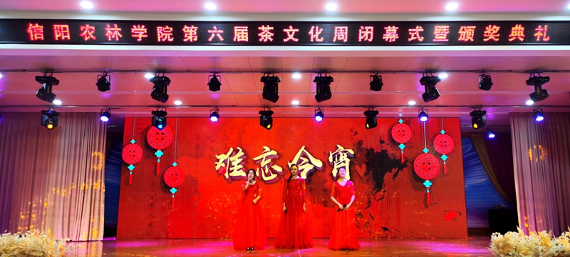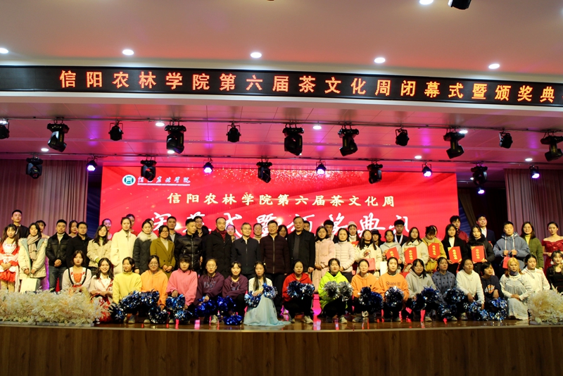 啦啦操《你笑起来真好看》拉开了闭幕式的序幕,舞蹈《彩云之南》《旧宫春》《寄明月》、相声《大保镖》、歌曲《寻茶》赢得了全体观众的阵阵喝彩。期间,党委副书记王庆兵,团委书记王鹏,教务处处长王学增,茶学院院长郭桂义、副院长陈义、党总支副书记朱建梅为第十六届学生茶艺大赛一等奖、二等奖、三等奖学生颁奖并合影留念。最后,一曲旋律优美、回味悠长的《难忘今宵》为闭幕式画上了圆满的句号。