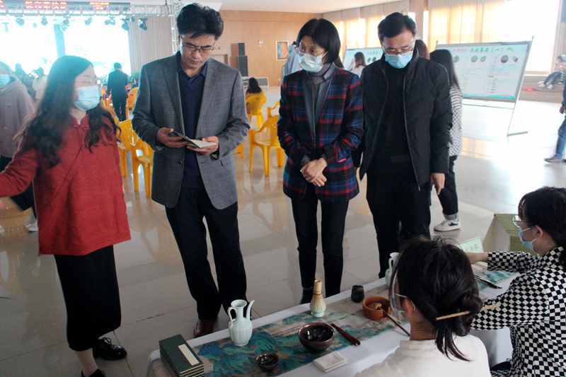开幕式前校领导观看了茶学院制作的茶文化知识展板、《茶叶综合利用》课程实验作品展、《茶叶包装与贮运》学生作品展、《茶艺学》课程成果茶席展,对茶学院的专业设置和人才培养模式给予了肯定。