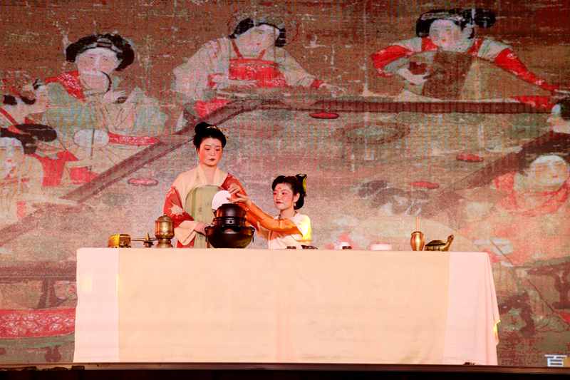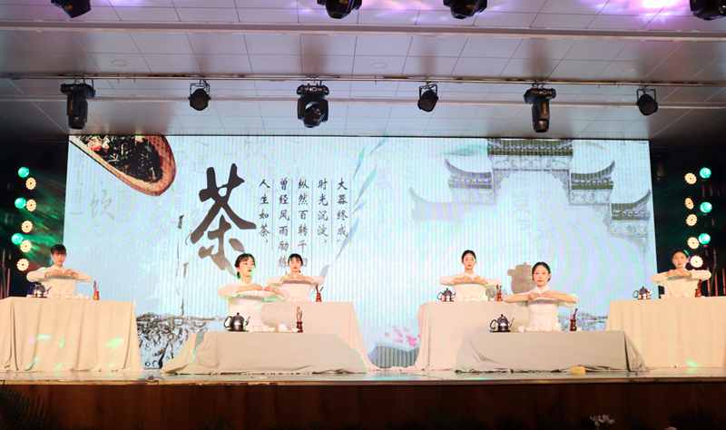 开幕式在优美艳丽的双人舞蹈《赤伶》表演中拉开了帷幕;恢弘开阔的师生古筝合奏《战台风》使现场高潮迭起;男子和女子茶艺表演展示了紫茶壶和盖碗不同的泡茶意境;为庆祝建党一百周年特别编排的教师配音演唱节目《声悦华夏》、学生合唱节目《五四版错位时空》,声声入心、旋律悠扬、气势恢弘,引起了现场师生的情感共鸣;结合课堂实践教学的《调饮茶》表演,更是吸引了观众的目光,让大家感受到了有着千年历史的茶饮与现代调饮碰撞出的无限魅力;梦回大唐的《大唐煎茶》表演、古风演绎的服装秀《茶行》等节目精彩纷呈,表达了对建党百年的庆祝之情,展示了我国博大精深的茶文化内涵,充分体现了茶学院学子对茶文化的热爱和传承情感。