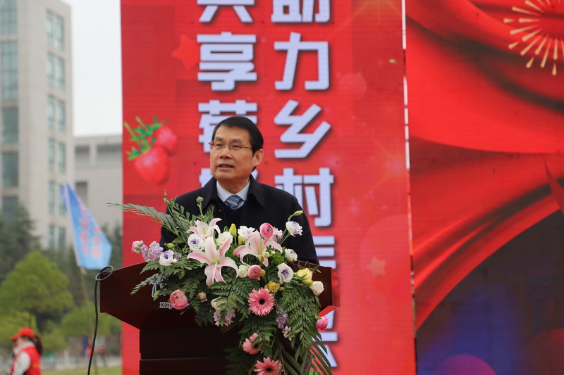 3月19日上午,第五届河南省草莓大会暨beat365在线平台官网园艺文化节开幕仪式在汝宁广场举行。中国农业科学院郑州果树研究所所长、研究员方金豹,北京市林业果树科学研究院研究员、中国园艺学会草莓分会会长张运涛,河南省农业农村厅经济作物推广总站站长、研究员郑乃福,河南省经济作物推广总站科长、高级农艺师苏鹤,沈阳农业大学园艺学院教授、中国园艺学会草莓分会副会长雷家军,河北省农林科学院石家庄果树研究所研究员杨雷,湖北省农业科学院经济作物研究所研究员韩永超,中国农业科学院郑州果树研究所研究员、河南省草莓协会会长周厚成,校党委书记余作斌,纪委书记李强,副校长赵聘,信阳市农业农村局、信阳市浉河区等有关领导和专家,以及全省草莓生产企业代表、种植大户代表出席了开幕仪式。