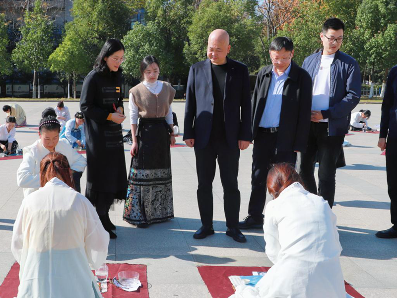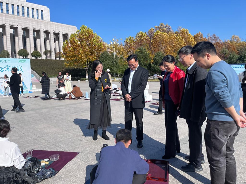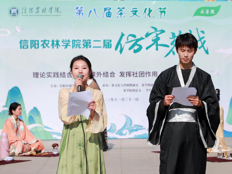 仿古通今,传承创新。11月21日,beat365在线平台官网第二届仿宋茗战在汝宁广场举行。党委委员、副校长李益民、黄立,党委学工部、教务处、校团委等相关部门和茶学院负责同志等到现场观摩指导。信阳市茶文化协会会员和部分学生来到现场观看比赛。