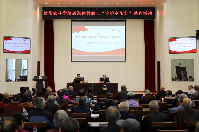 此次活动分“银龄学纪法”“乐呵重阳”“感恩有您”三个版块。在“银龄学纪法”版块,离退休工作处就微信使用、拒绝酒驾等方面进行了强调,希望大家继续做正能量的传递者、优良家风的传承者,达到以遵规守法守护晚年幸福生活之目的。活动还邀请信阳市公安局反诈中心二级警长钱如意以《关爱老年人、守护夕阳红》为题为离退休教职工做防反诈骗方面的辅导报告,钱警官从个人信息泄露与网络安全、常见的对老年人诈骗手段与防范方法等方面,并结合实际案例进行了深入辅导,提高了离退休同志的防骗意识,增强防反诈骗的“免疫力”。在“乐呵重阳”版块,离退休教职工积极踊跃,节目分层,有校“银龄”合唱团大合唱、独唱、戏曲演唱、舞蹈、柔力球表演、电子琴独奏……台下时不时响起热烈的掌声和欢呼声,热闹非凡。在“感谢有您”环节,青年学生代表借用诗词“新竹高于旧竹枝,全凭老干为扶持”表示感谢,决心不会辜负前辈的热切期望和关爱,努力学习、勤于实践、不断进步;青年教师代表演唱《家和万事兴》送上祝福,祝愿学校这个“大家庭”在全体教职工生的共同努力下和谐持续发展,祝愿每位离退休教职工的个人家庭“家和万事兴”。