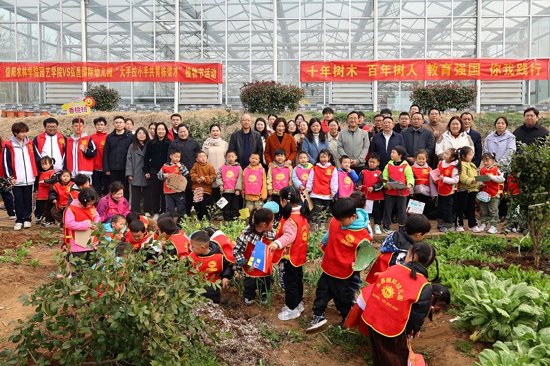 春回大地万物苏,植树添绿正当时。3月12日,第47个植树节,园艺学院党委、校关工委携弘昌国际幼儿园共同举办“大手拉小手共育栋梁才”主题植树活动。校长曹健,党委委员、副校长李益民,园艺学院师生、关工委相关同志、弘昌国际幼儿园的老师和小朋友们共计100余人参加活动。