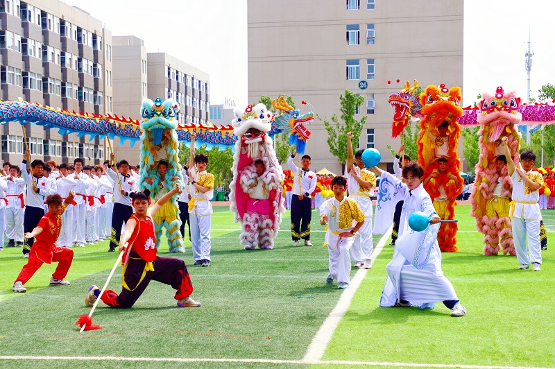 开幕式文艺表演拉开帷幕。团体操表演活力四射,同学们身姿轻盈,动作精准同步,诠释着新时代大学生的自信和风采;武术表演震撼登场,表演者们拳脚生风,刀枪剑戟舞得虎虎生威,一招一式尽显中华武术的博大精深;舞龙舞狮表演精彩绝伦,巨龙翻腾、雄狮跳跃,灵动的身姿、绚丽的色彩,赢得阵阵喝彩;彩旗队表演同样夺目,彩旗挥舞如彩虹飘动,舞步整齐划一,展现奋发昂扬的精神姿态。