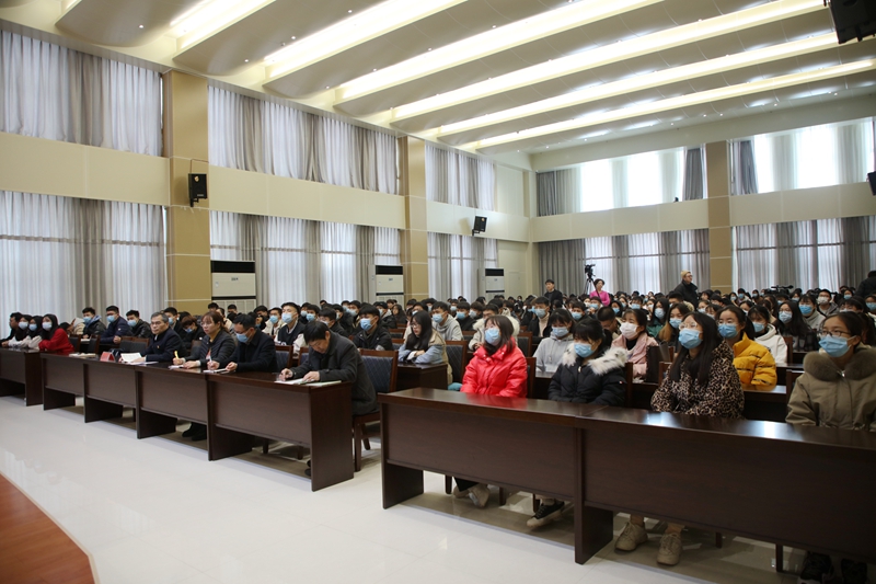 11月30日上午,省委“百姓宣讲团”成员、河南大学副教授刘嘉尧来校宣讲党的十九届五中全会精神,宣讲报告会在图书馆6楼报告厅召开。党委副书记王庆兵、相关部门负责同志、马克思主义学院教师代表和各学院学生代表共260余人参加报告会。报告会由王庆兵主持。