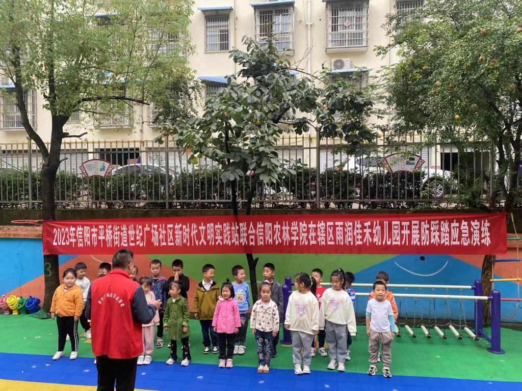 活动结束后,易雯雯一行来到世纪广场社区的雨润佳禾幼儿园开展防踩踏应急演练。