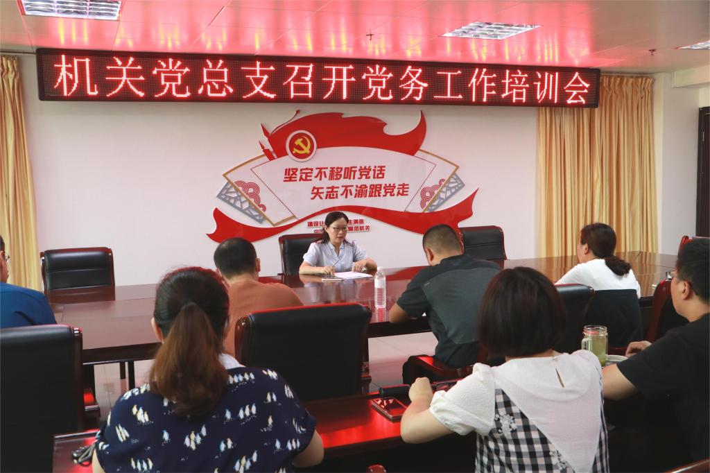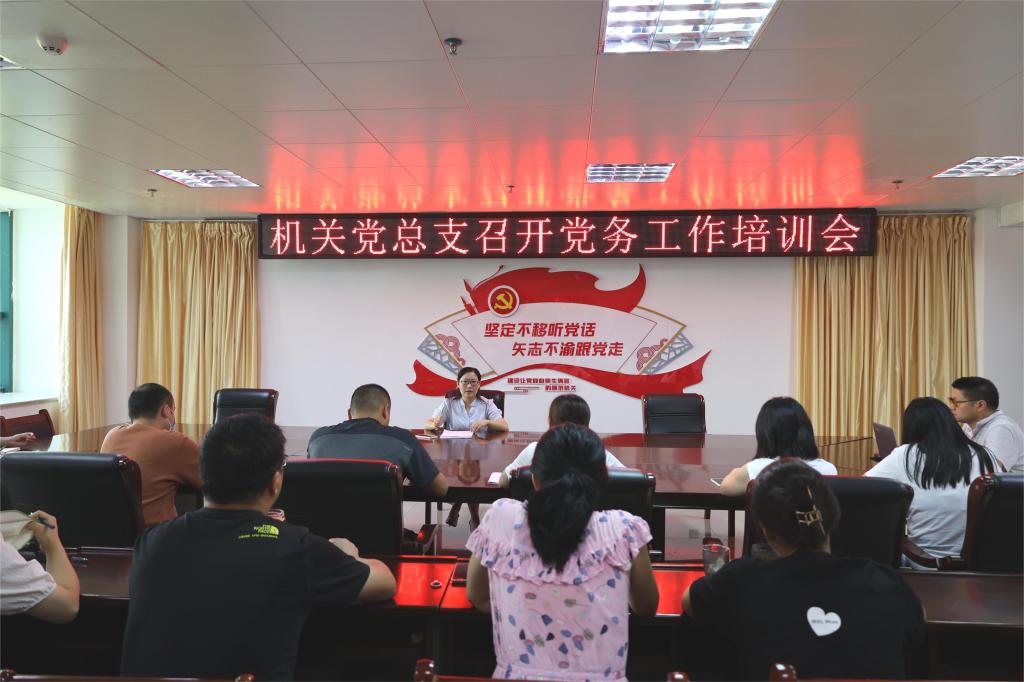 为有效增强机关党组织政治功能和组织力,加强基层组织标准化规范化建设,2022年8月2日上午9点,机关党总支在综合楼五楼第八会议室召开了党务工作培训会。会议由机关党总支副书记易雯雯主持,机关各党支部党建联系人参会。