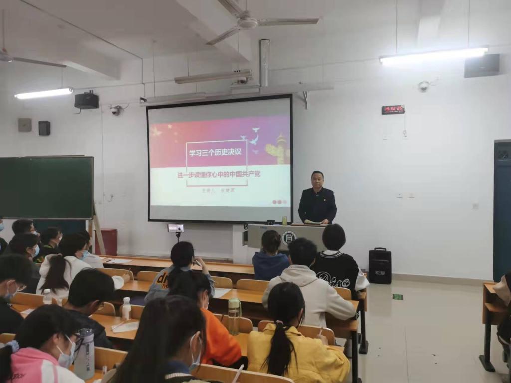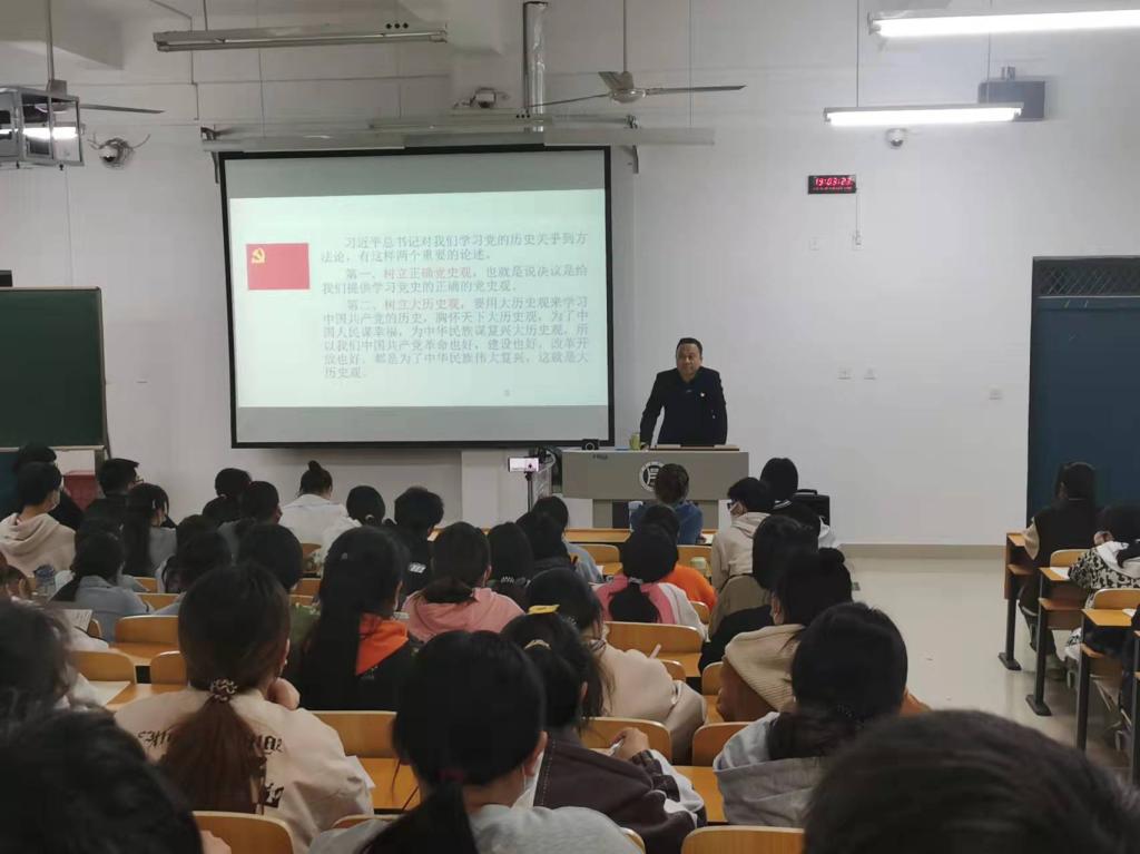 宋书记围绕三个历史决议、党的十九届六中全会回顾,总结了党的百年历史与教训,强调青年大学生要树立正确的党史观和大的历史观,要求同学们深入了解党史,用党的奋斗历程和伟大成就鼓舞斗志,明确方向,用党的光荣传统和优良作风坚定信念、凝聚力量,用党的实践创造和历史经验启迪智慧、砥砺品格,厚植爱党、爱国、爱社会主义的情感,让红色基因代代相传;强化党的意识,坚定党的信念,自觉地为党的事业奋斗,为中国特色社会主义新时代的建设贡献力量。