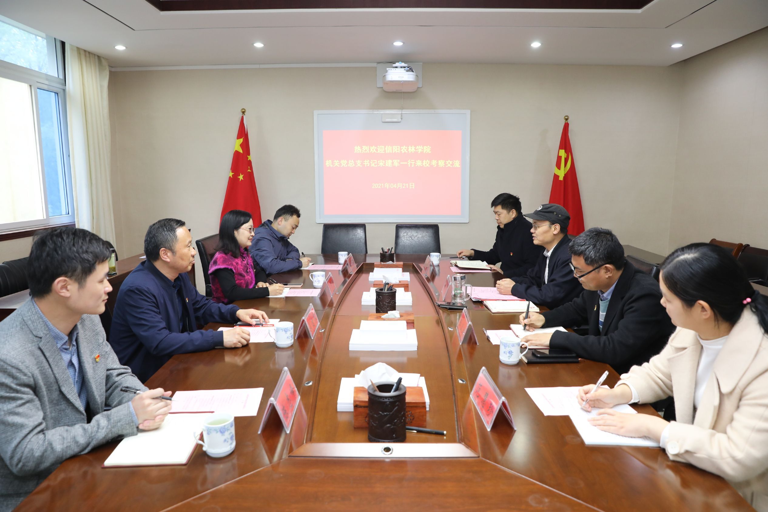 4月21日上午,机关党总支书记宋建军带队一行4人,前往信阳师范学院机关党委进行考察交流。