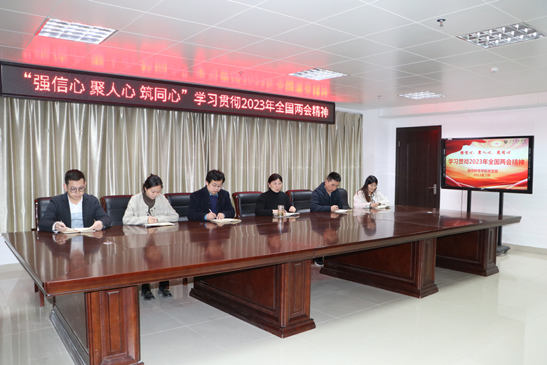 3月14日,继续教育学院党支部在综合楼三楼第五会议室召开“强信心 聚人心 筑同心 ”学习贯彻2023年全国两会精神专题学习会。会议由支部书记黄艳霞主持,全体党员教师参加。