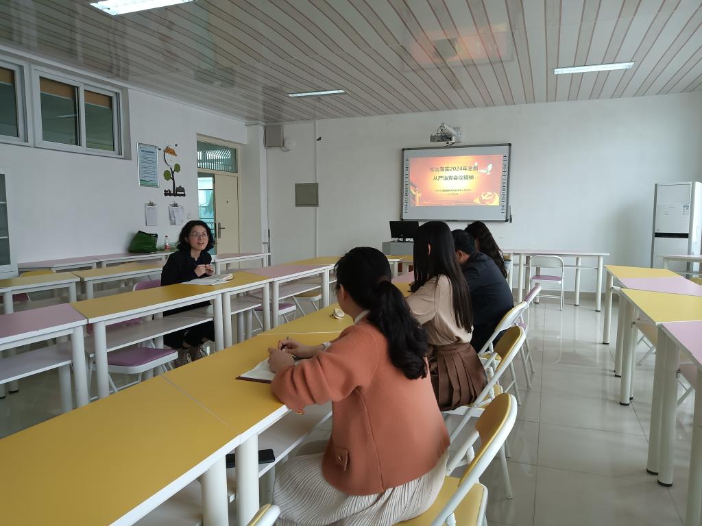 会上,学习传达学校2024年全面从严治党工作会议精神。朱建梅强调,今年是中华人民共和国成立75周年,是实现“十四五”规划目标任务的关键一年,抓好全面从严治党,抓实党的建设工作意义重大、责任重大。全体党员干部教师要深入贯彻习近平总书记关于全面从严治党的重要论述要求,不断提升政治领悟力 政治判断力 政治执行力,为推进学校高质量发展做出应有的贡献。