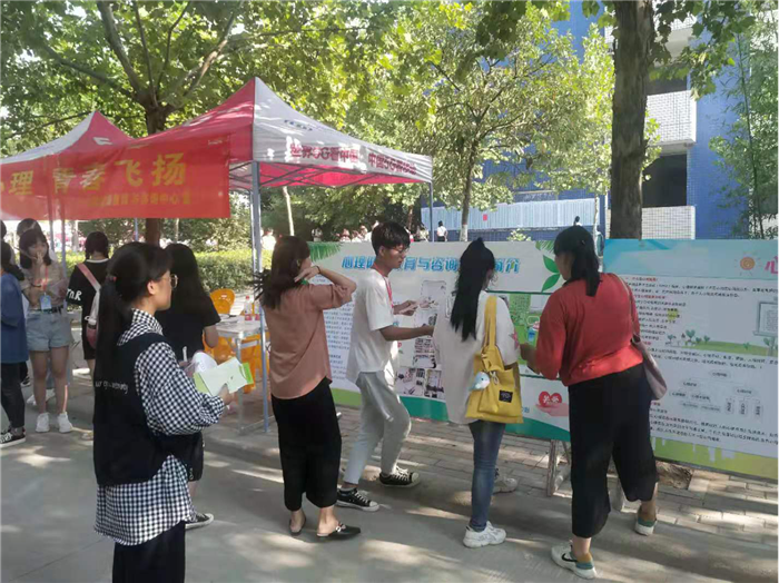 2019年9月6日迎新季开始,心理健康教育与咨询中心组织校学生会心理部、阳光心理社团成员在求是路开展迎新心理健康知识宣传普及活动,旨在帮助新生了解心理保健知识,尽快适应大学生活。