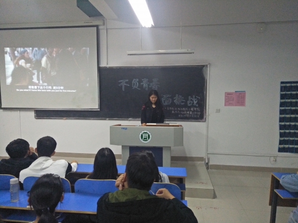 2018年10月25日晚,生物与制药工程学院于一教c201举办了主题为“不负青春,直面挑战”的观影活动。本次活动由生物与制药工程学院心理健康工作部主办,生物与制药工程学院2018级学生参加。