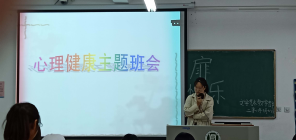 班会上,班长毛清林与心理委员于盼洋通过结合当下大学生的基本情况,为同学们讲解了心理健康小知识、小故事,其中主要介绍了大学生如何控制情绪,处理人际关系等问题的处理方法,赢得了同学们的认可与掌声。随后,班会进行了心理小测试、心理小游戏等活动,大家畅所欲言,踊跃参加,班会上笑声不断,气氛非常活跃。此次班会主要为了呼吁大学生重视自己的心理健康,增强心理保健意识,要以积极良好的心态面对今后的生活与学习。